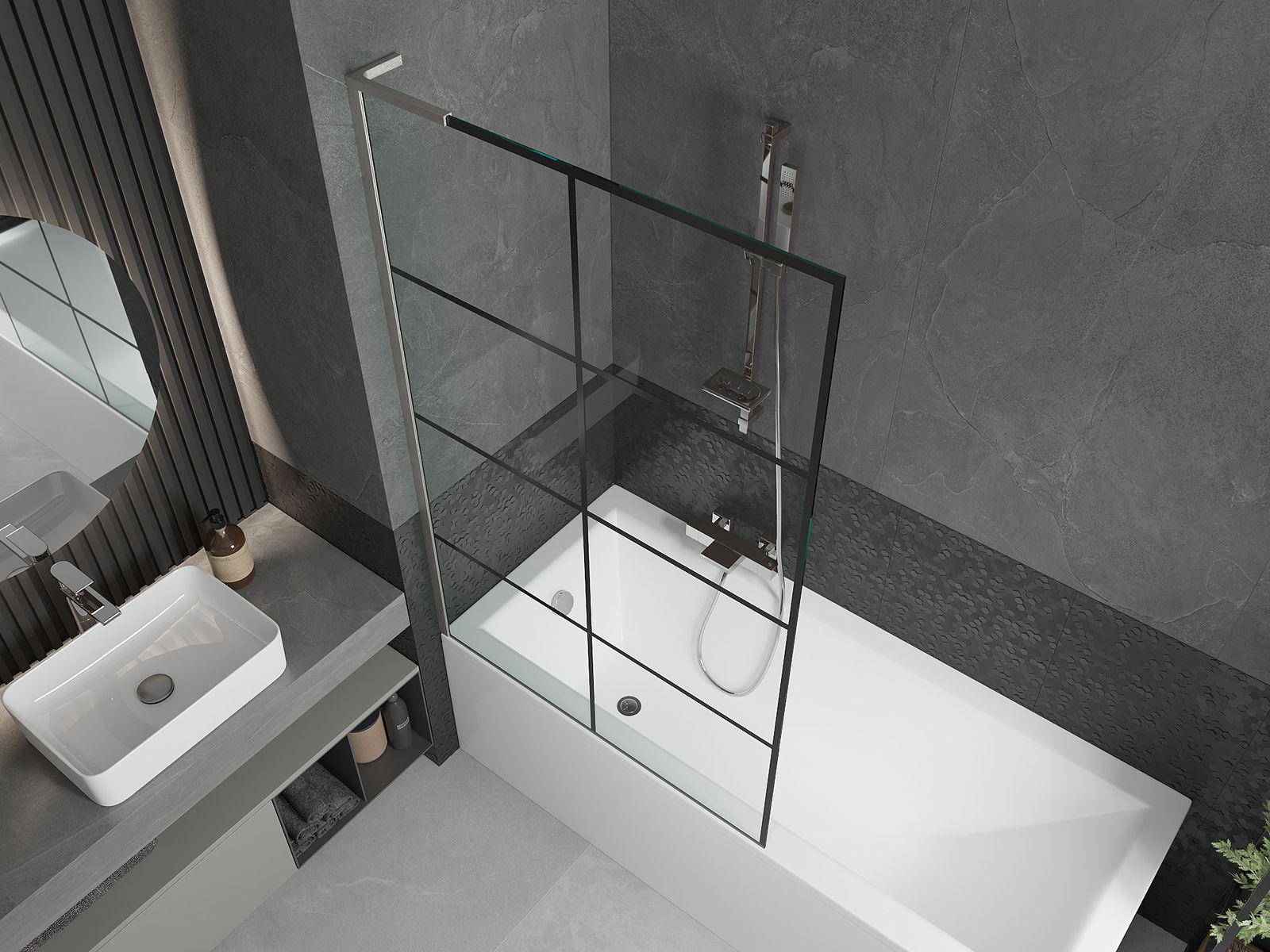 Mexen Next L 1-winged Bath Screen 100 x 150 cm, Black Grid, Brushed Nickel - 895-100-000-03-77-97