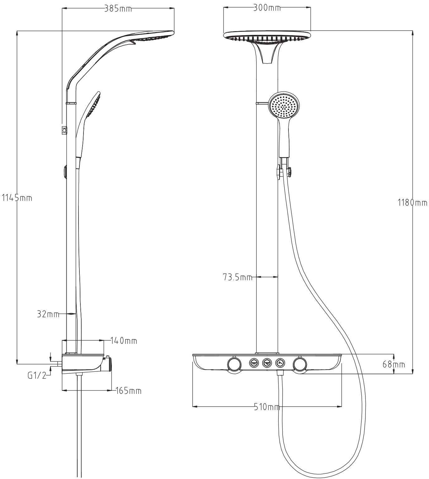Distance from the wall: 385 mm