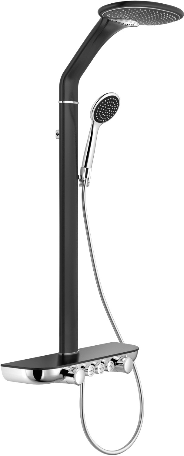 The shower faucet with a cosmetic shelf is a functional solution that combines ease of use with aesthetics. The shelf allows for the storage of cosmetics, soaps, shampoos, and other accessories at hand during a bath.