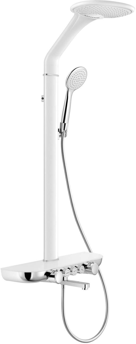 The shower faucet with a cosmetic shelf is a functional solution that combines ease of use with aesthetics. The shelf allows for the storage of cosmetics, soaps, shampoos, and other accessories at hand during a bath.