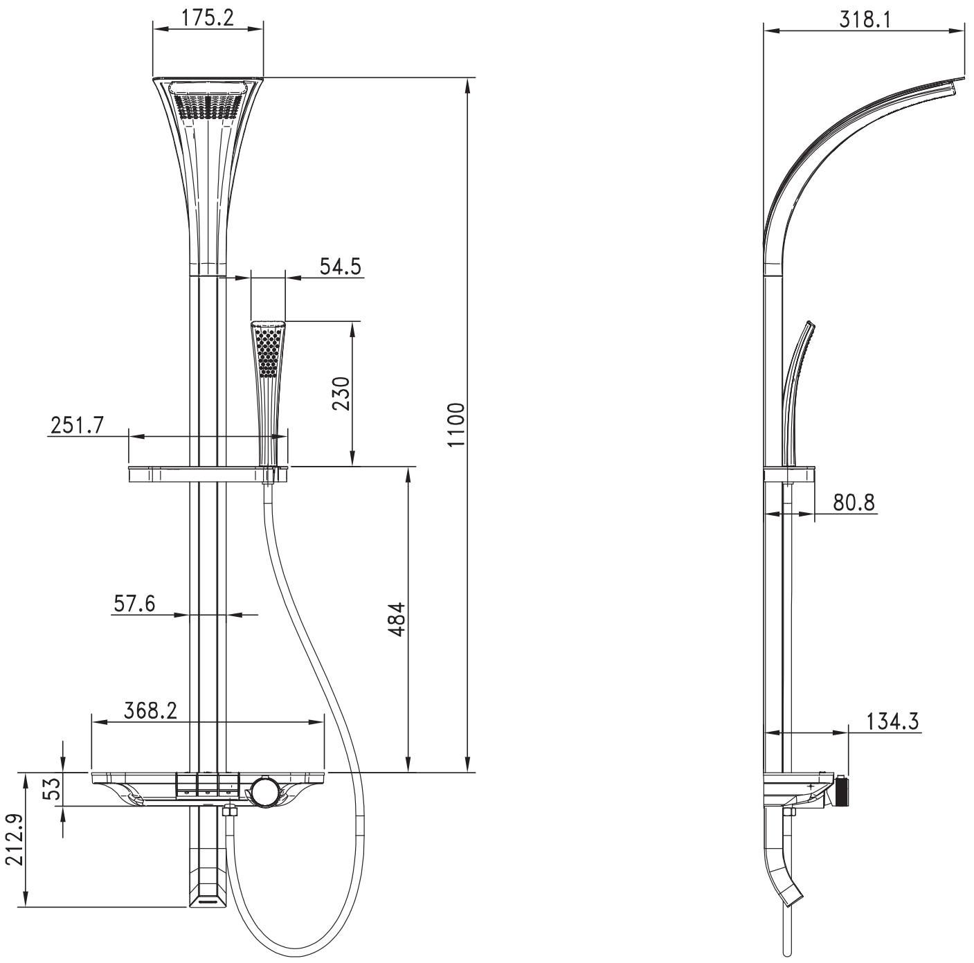 Showerhead finish: Black