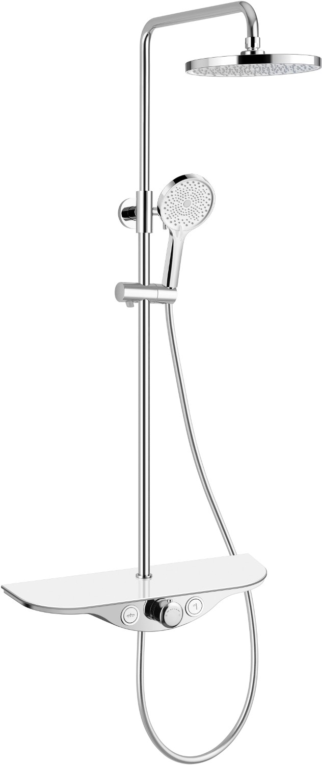 The shower faucet with a cosmetic shelf is a functional solution that combines ease of use with aesthetics. The shelf allows for the storage of cosmetics, soaps, shampoos, and other accessories at hand during a bath.