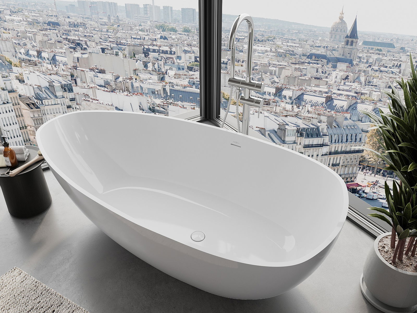 Mexen Imola freestanding stone composite bath 160 x 81 cm, white gloss - 57281608010