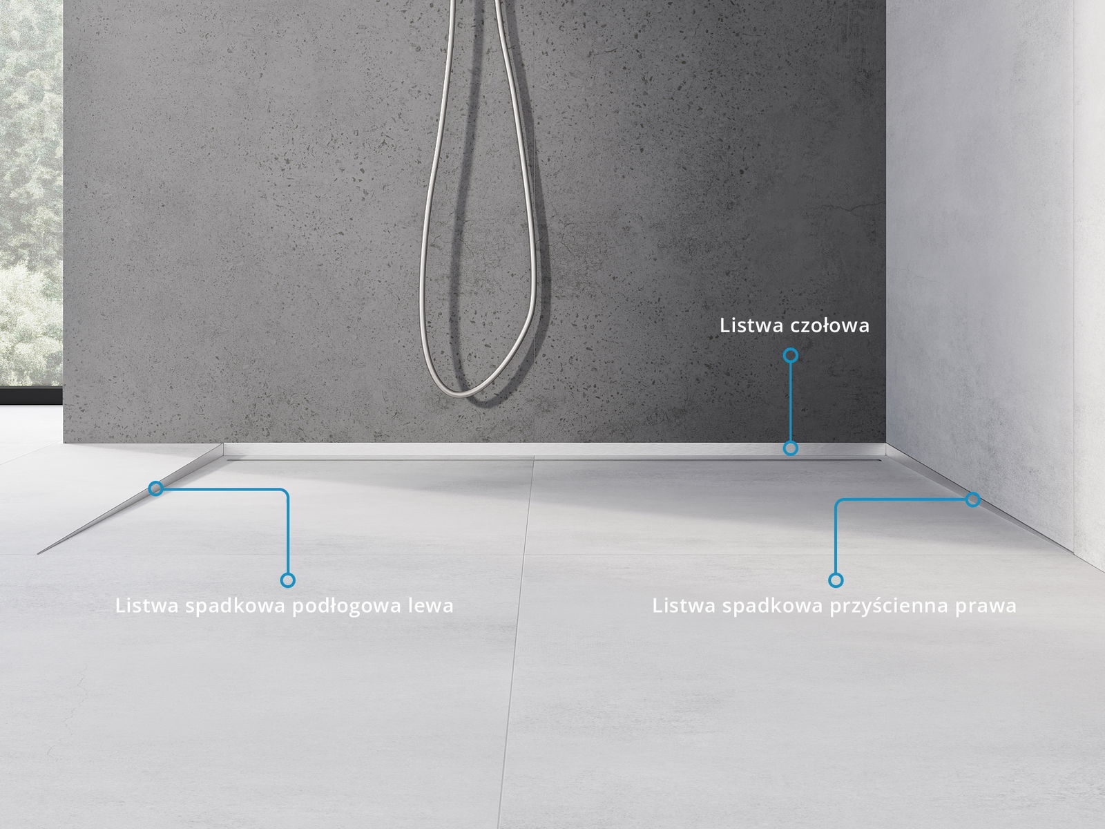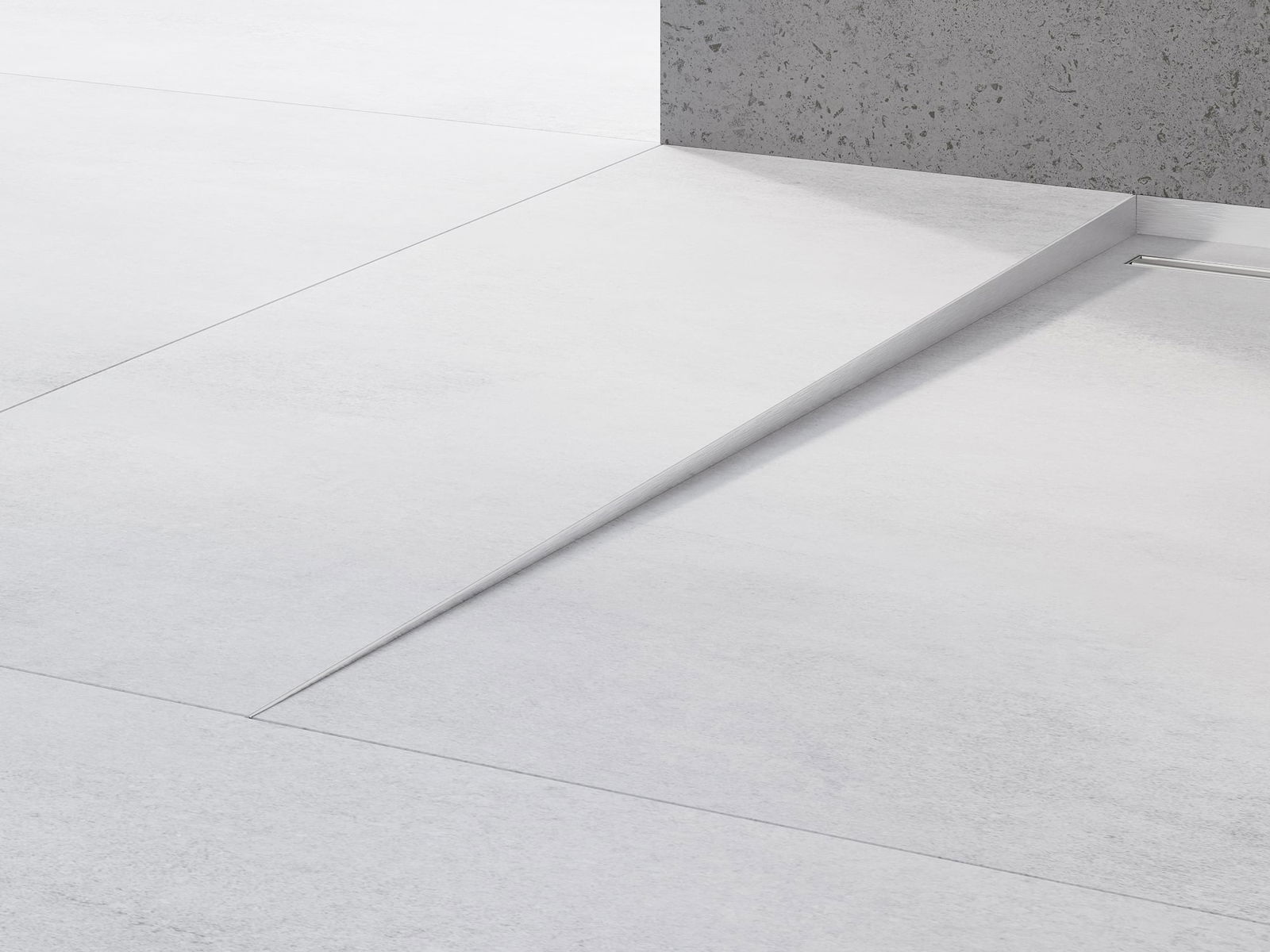 The sloped strip has a precisely set angle of inclination, which effectively directs water towards the drain, preventing it from accumulating on the floor surface. As a result, the water is effectively drained away, minimizing the risk of puddles and ensuring a dry and safe surface.