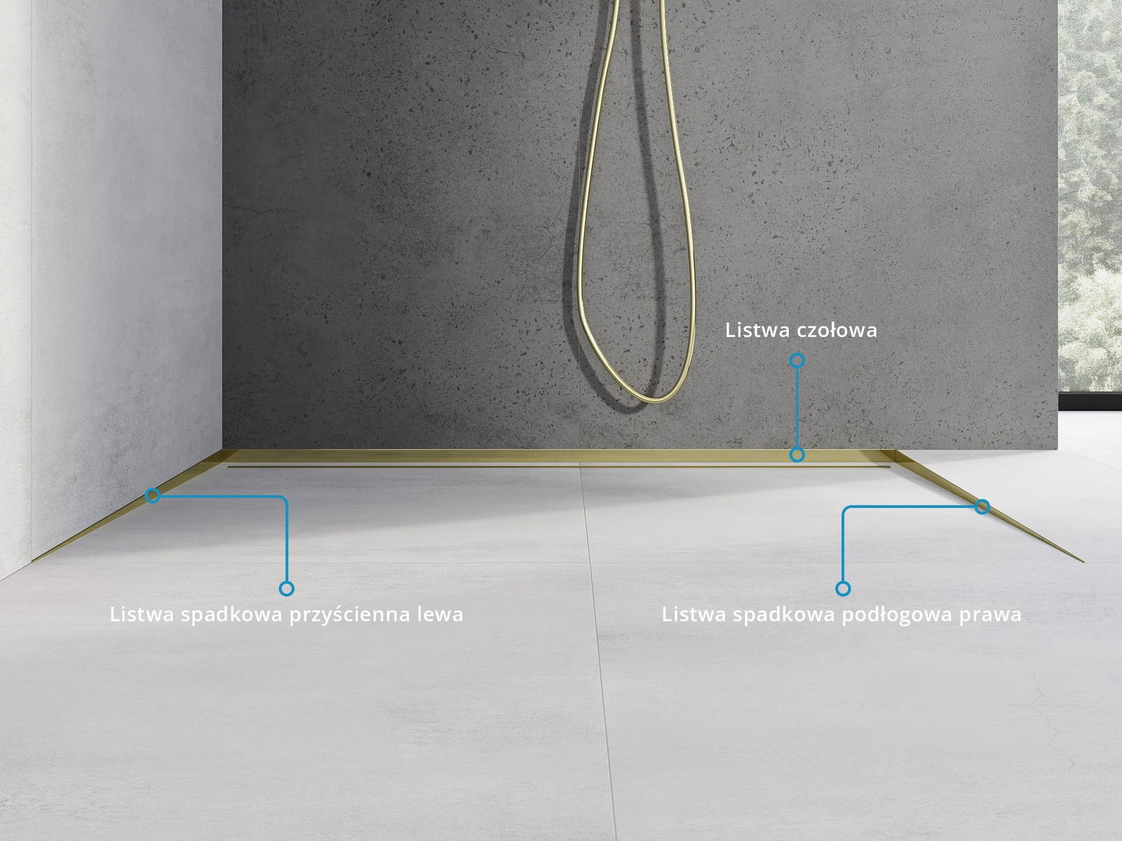The sloped strip has a precisely set angle of inclination, which effectively directs water towards the drain, preventing it from accumulating on the floor surface. As a result, the water is effectively drained away, minimizing the risk of puddles and ensuring a dry and safe surface.