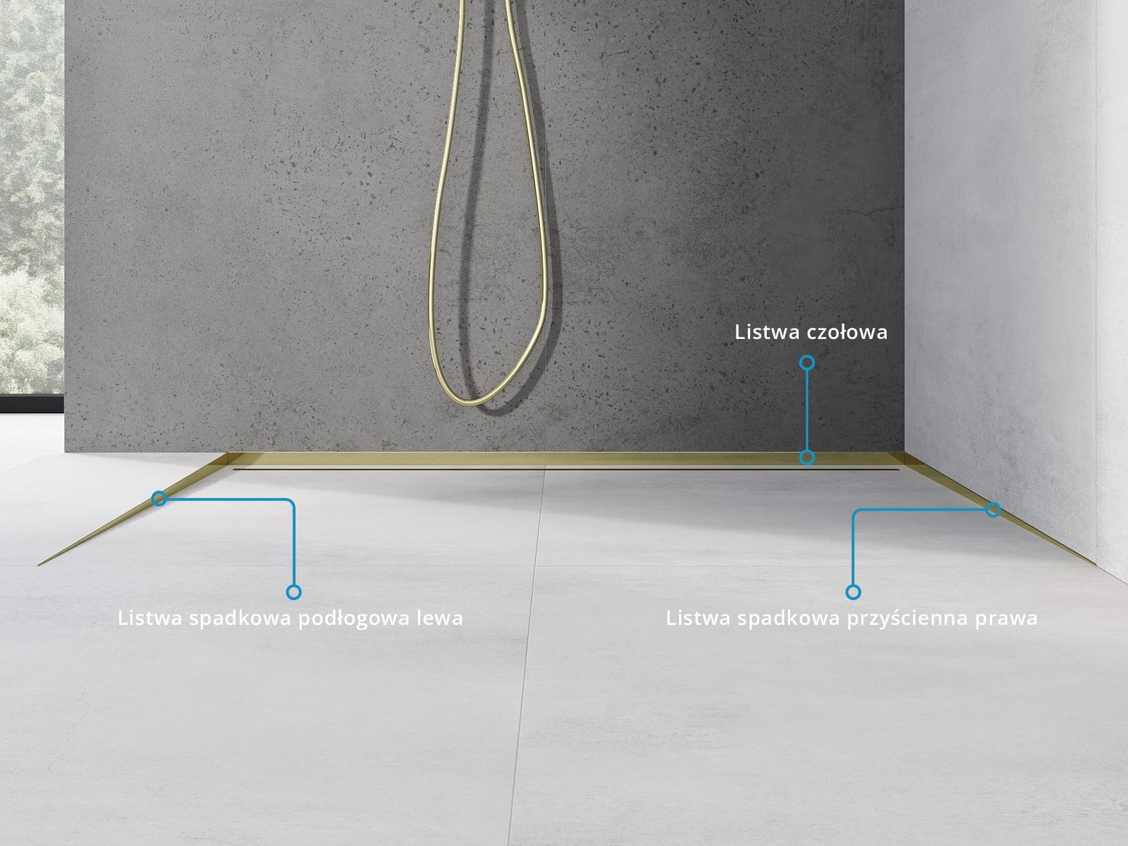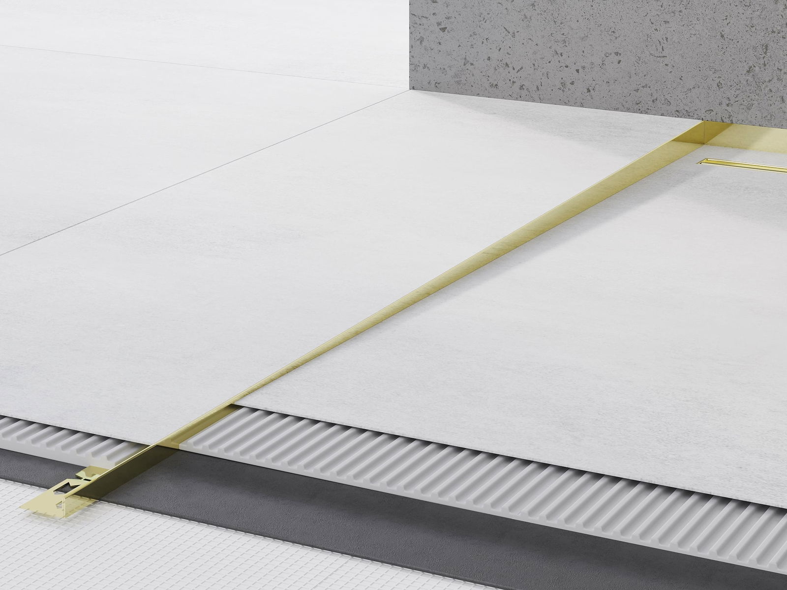 The sloped strip has a precisely set angle of inclination, which effectively directs water towards the drain, preventing it from accumulating on the floor surface. As a result, the water is effectively drained away, minimizing the risk of puddles and ensuring a dry and safe surface.