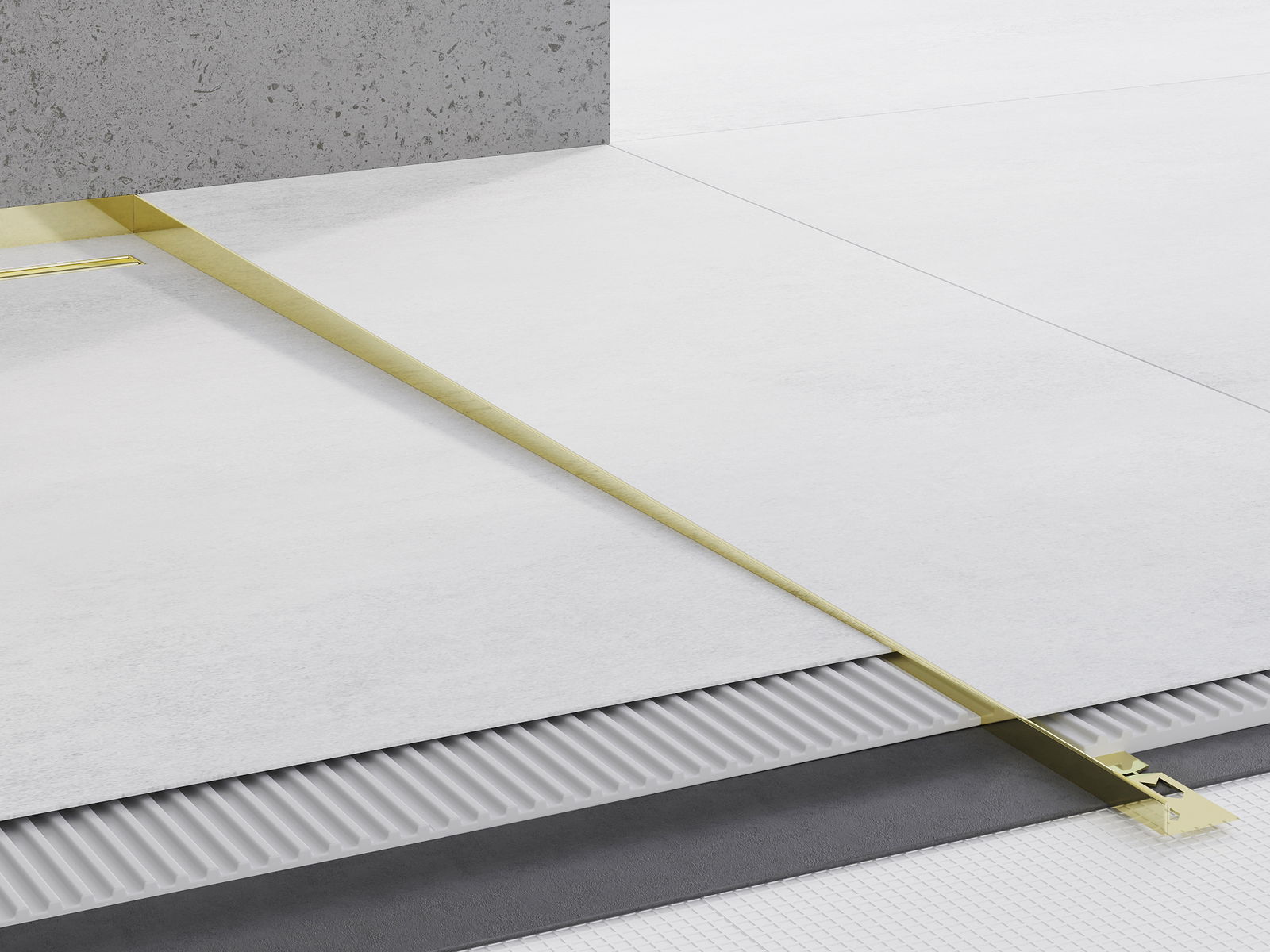 The sloped strip has a precisely set angle of inclination, which effectively directs water towards the drain, preventing it from accumulating on the floor surface. As a result, the water is effectively drained away, minimizing the risk of puddles and ensuring a dry and safe surface.