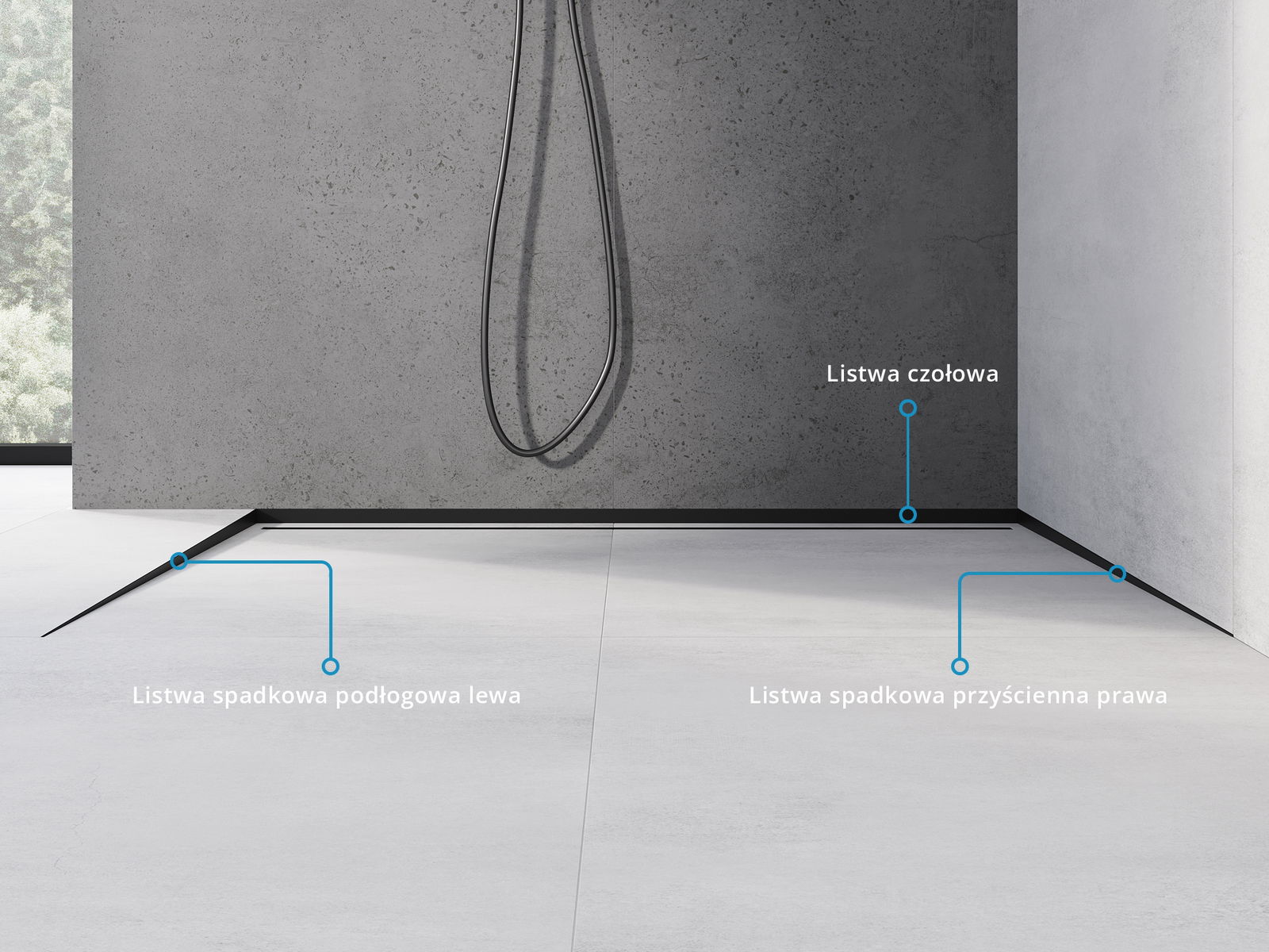 Using the slope strip eliminates the need to create a so-called envelope from tiles, which significantly simplifies the installation process of a linear drain. This solution avoids the additional, time-consuming task of making an envelope, which would normally be used to achieve the proper slope in the floor.