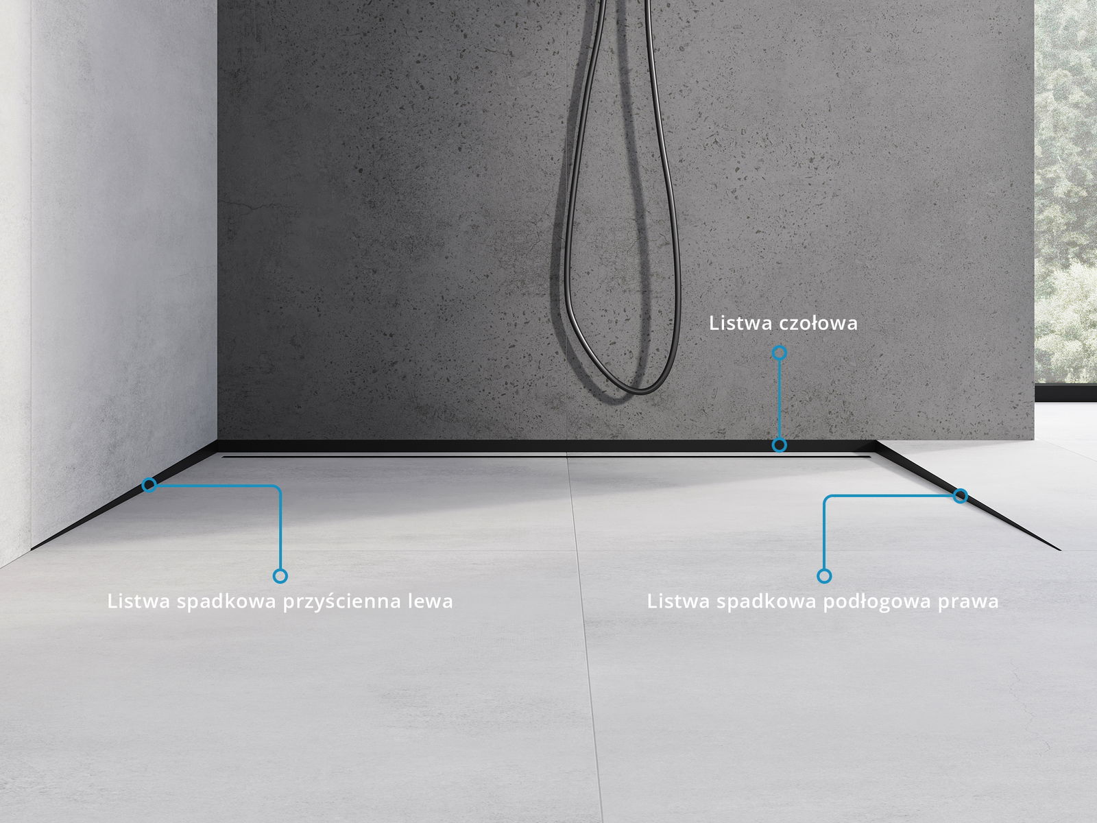 Using the slope strip eliminates the need to create a so-called envelope from tiles, which significantly simplifies the installation process of a linear drain. This solution avoids the additional, time-consuming task of making an envelope, which would normally be used to achieve the proper slope in the floor.