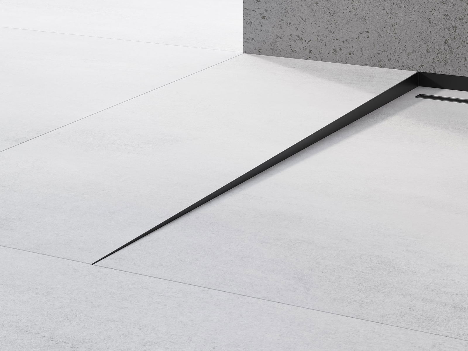 The sloped strip has a precisely set angle of inclination, which effectively directs water towards the drain, preventing it from accumulating on the floor surface. As a result, the water is effectively drained away, minimizing the risk of puddles and ensuring a dry and safe surface.