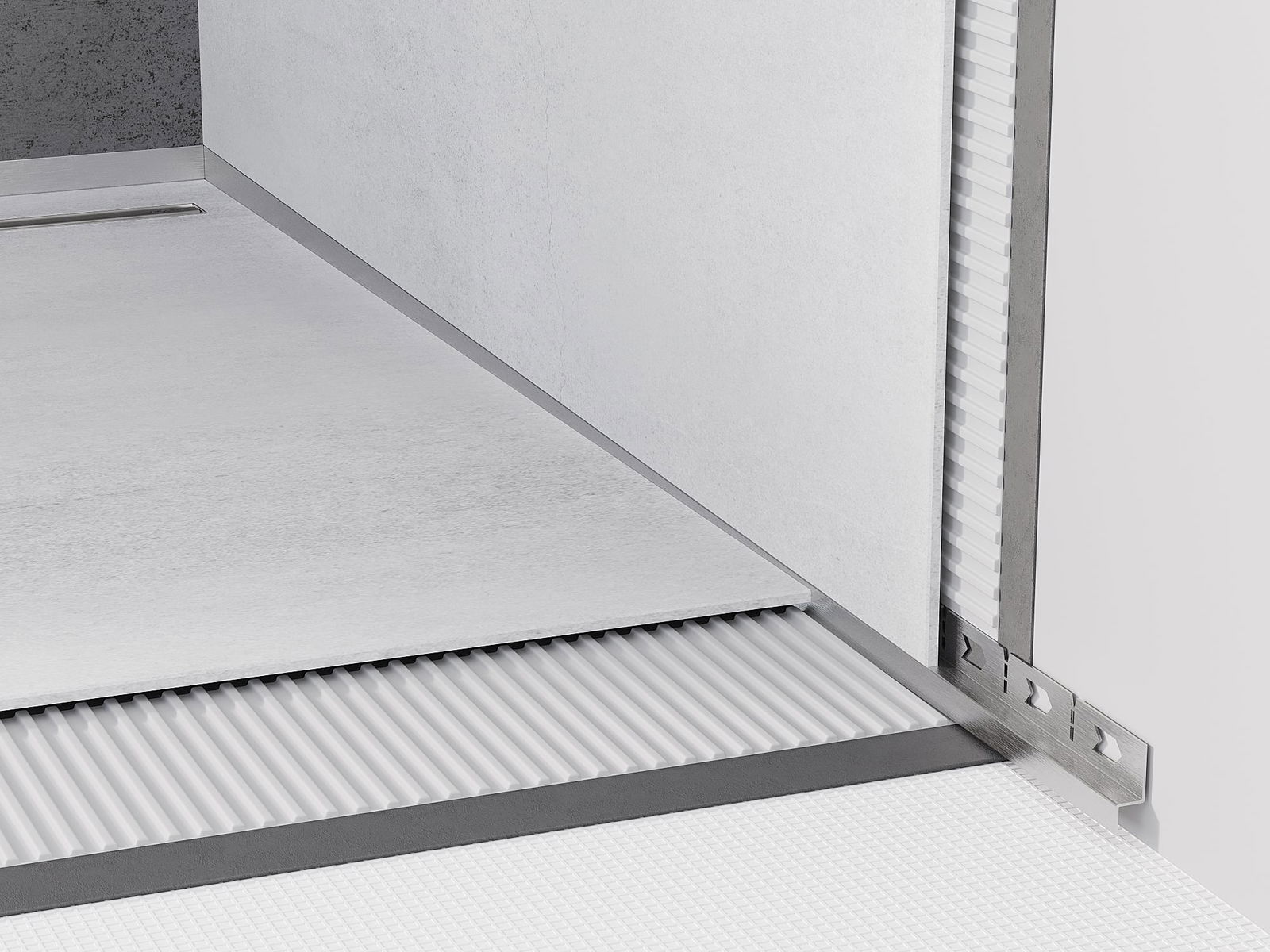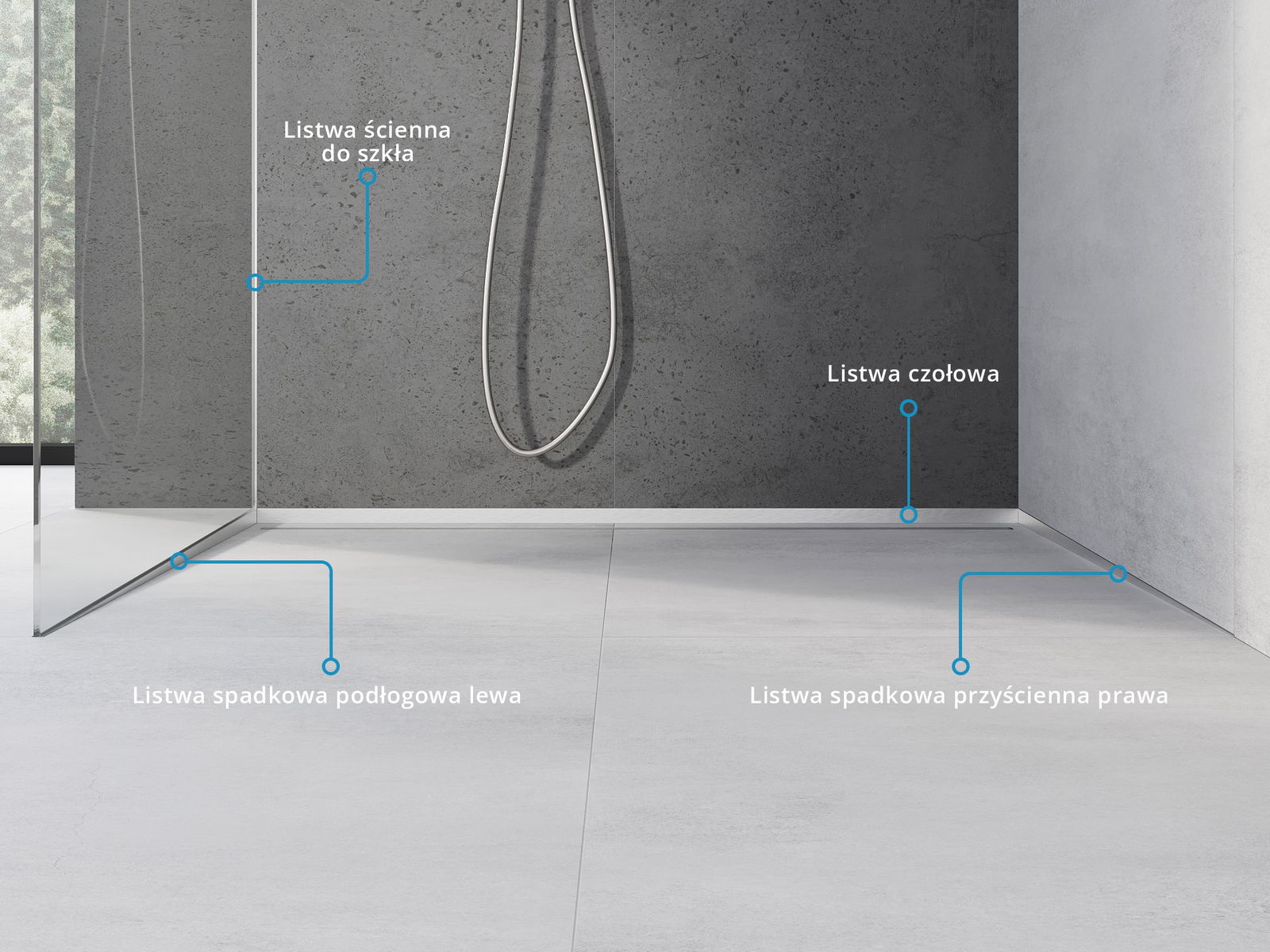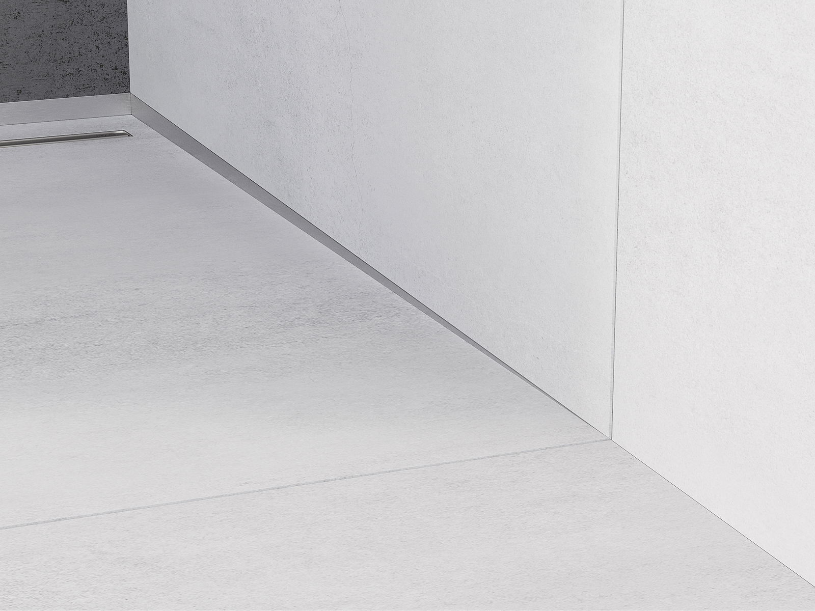 The sloped strip has a precisely set angle of inclination, which effectively directs water towards the drain, preventing it from accumulating on the floor surface. As a result, the water is effectively drained away, minimizing the risk of puddles and ensuring a dry and safe surface.
