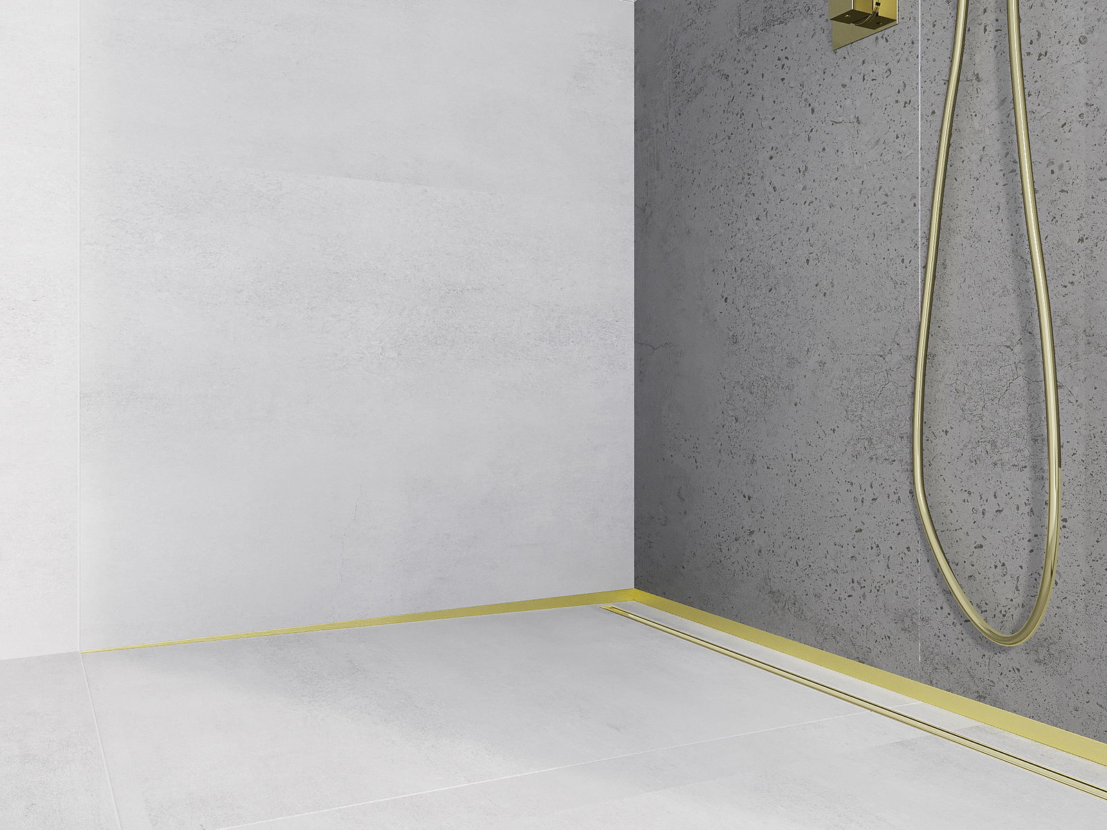 Using the slope strip eliminates the need to create a so-called envelope from tiles, which significantly simplifies the installation process of a linear drain. This solution avoids the additional, time-consuming task of making an envelope, which would normally be used to achieve the proper slope in the floor.