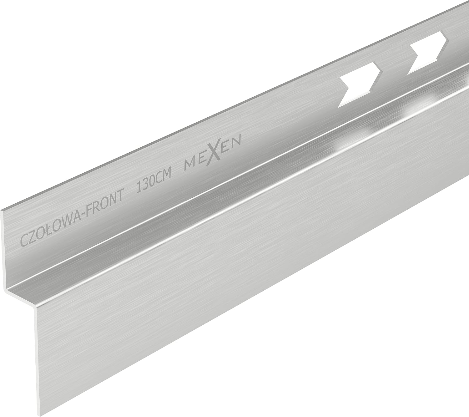 The front strip complements the use of slope strips, creating a cohesive whole in the shower space