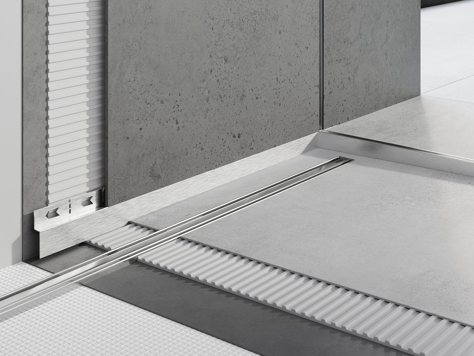 Using the slope strip eliminates the need to create a so-called envelope from tiles, which significantly simplifies the installation process of a linear drain. This solution avoids the additional, time-consuming task of making an envelope, which would normally be used to achieve the proper slope in the floor.