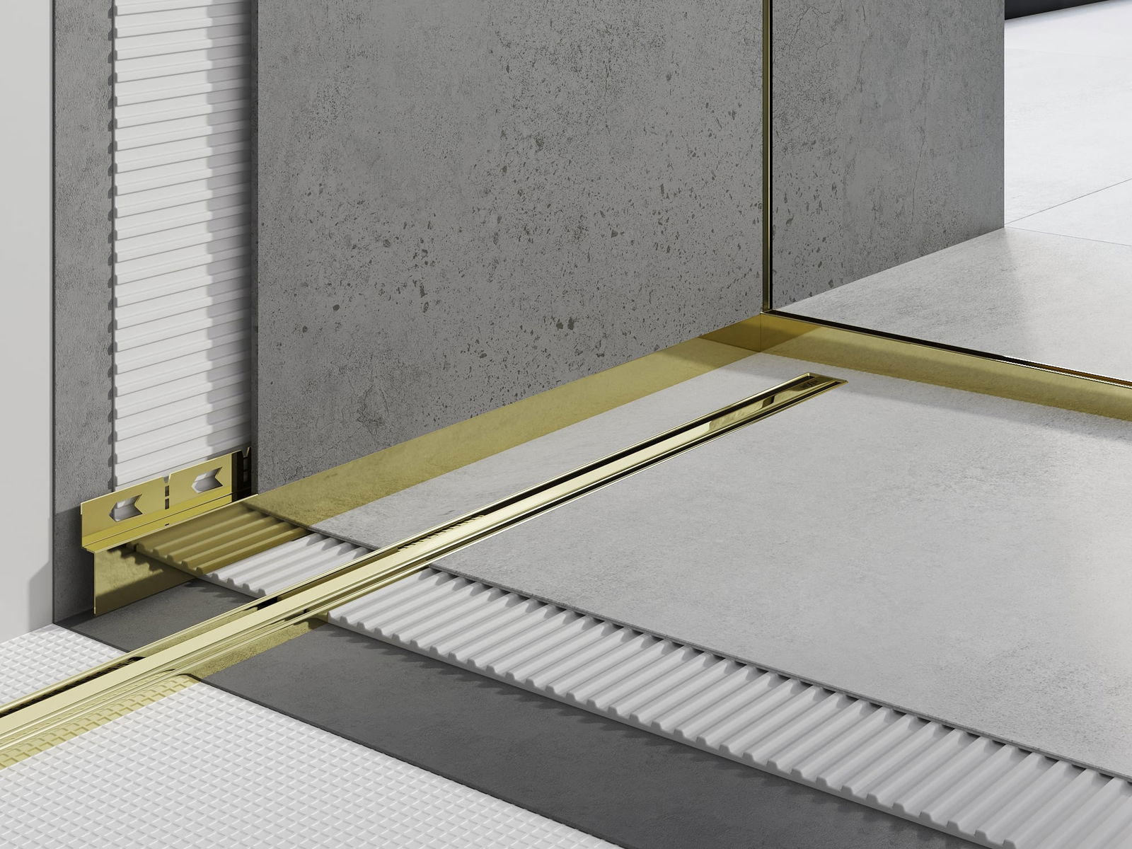Using the slope strip eliminates the need to create a so-called envelope from tiles, which significantly simplifies the installation process of a linear drain. This solution avoids the additional, time-consuming task of making an envelope, which would normally be used to achieve the proper slope in the floor.