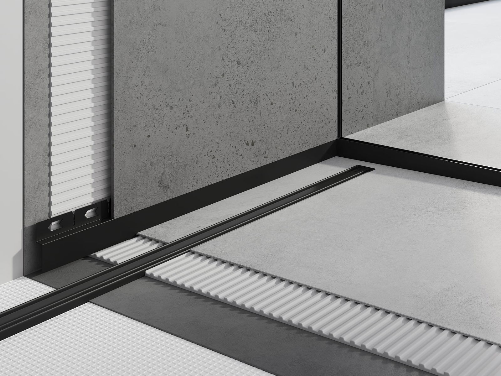 Using the slope strip eliminates the need to create a so-called envelope from tiles, which significantly simplifies the installation process of a linear drain. This solution avoids the additional, time-consuming task of making an envelope, which would normally be used to achieve the proper slope in the floor.