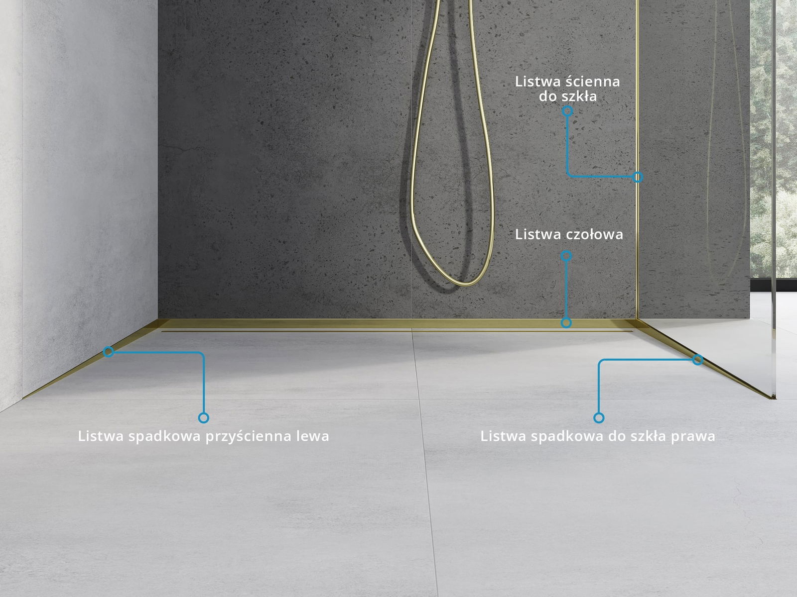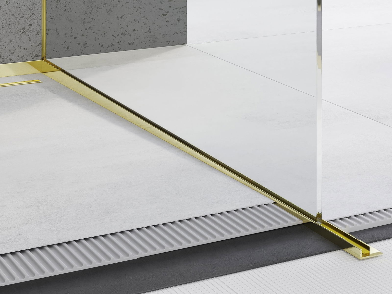 The sloped strip has a precisely set angle of inclination, which effectively directs water towards the drain, preventing it from accumulating on the floor surface. As a result, the water is effectively drained away, minimizing the risk of puddles and ensuring a dry and safe surface.