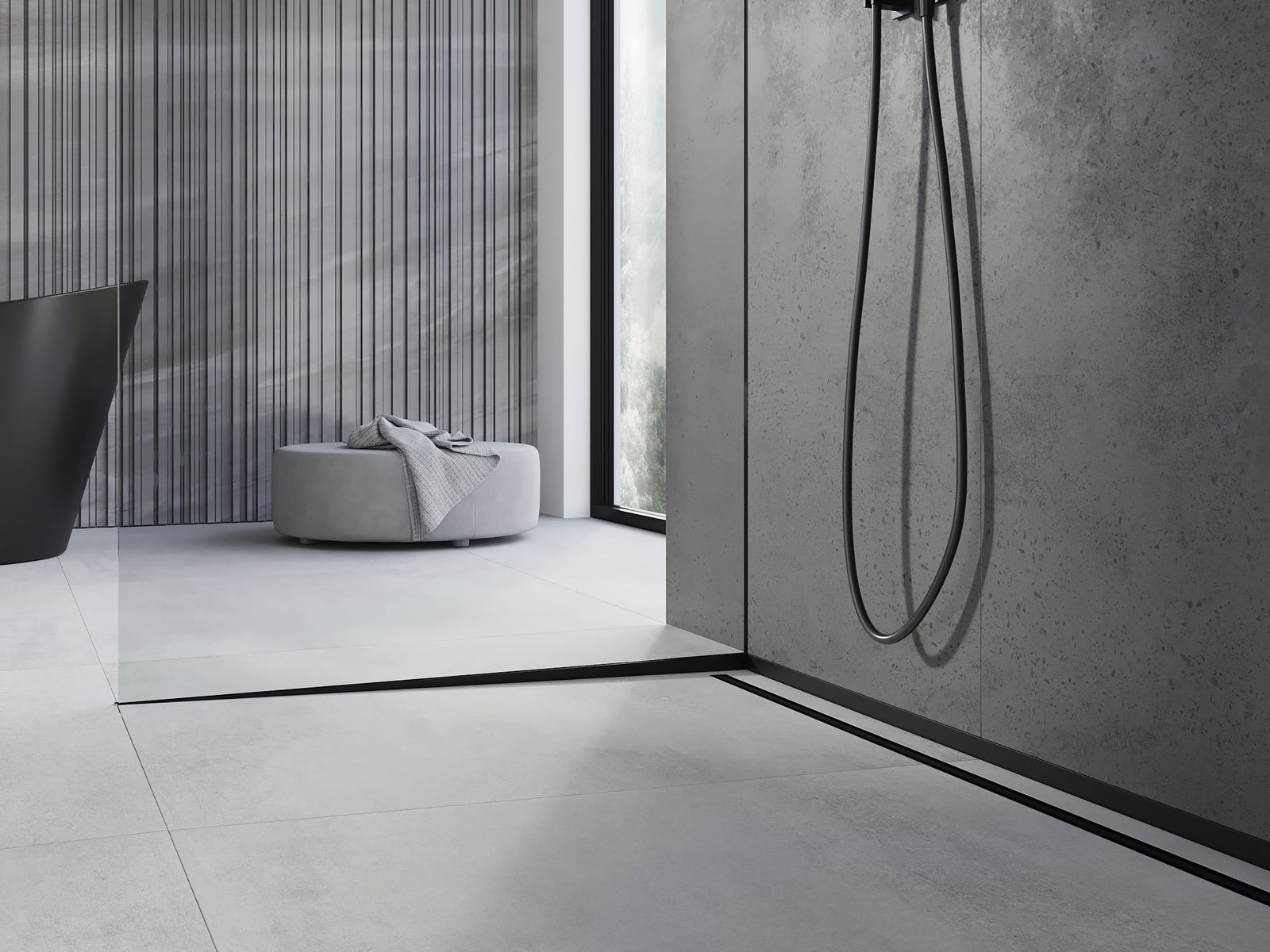 The strip has space for mounting a shower screen, which not only facilitates the installation process but also allows for the masking of the finish using silicone