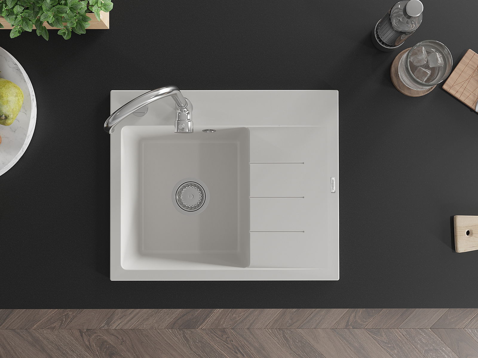 The surface of the sink is resistant to stains and discolouration, making it easy to maintain cleanliness and retain its colour for a long time of use. An aesthetic and practical addition to any kitchen.