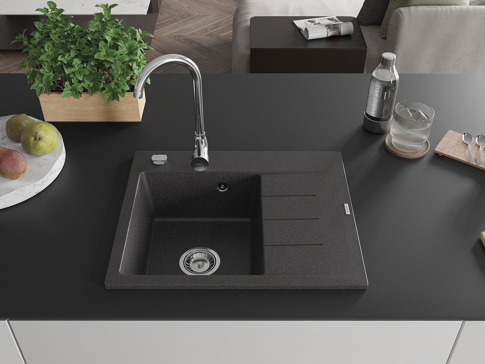 The sink is made from high-quality granite. It serves as an elegant and, above all, practical addition to any kitchen, regardless of its style. The high quality and durability of granite ensure many years of use.