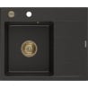 Mexen Ben granite kitchen sink 1-bowl with drainer, right 600 x 500 mm black/silver metallic siphon gold - 6523605000-73-G