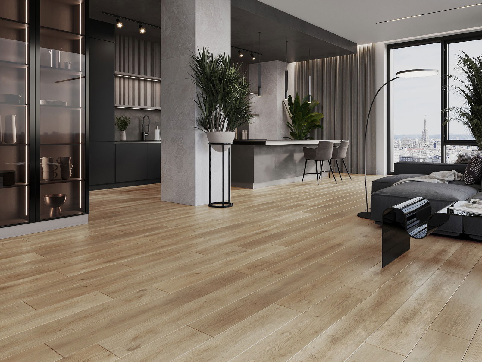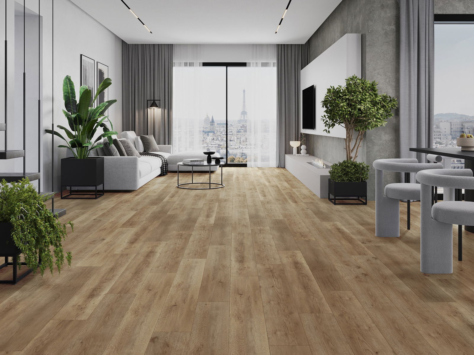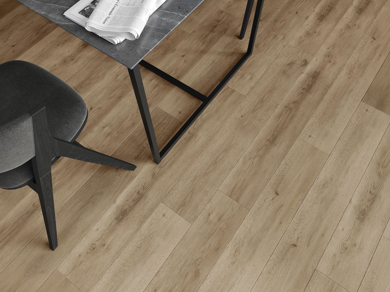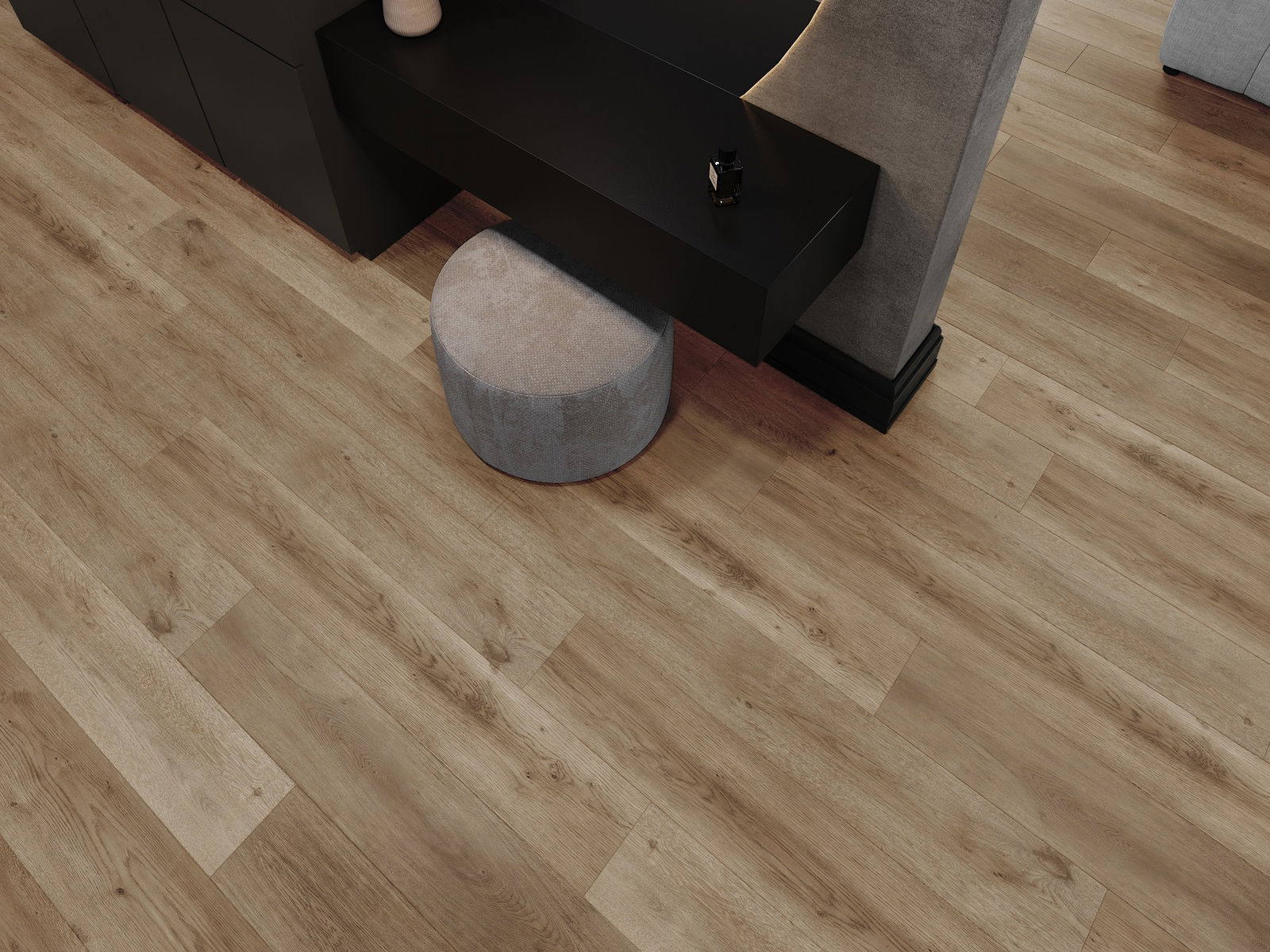 Vinyl panels feature an innovative 6.5 mm construction and 100% waterproofing, making them an excellent choice for any interior. Thanks to the integrated IXPE underlay with a thickness of 1.5 mm, installation is simple and quick, providing optimal sound insulation. Utility class 32 guarantees high resistance to damage and scratches. The surface that facilitates cleaning and compatibility with underfloor heating make them an ideal solution both for homes and offices.