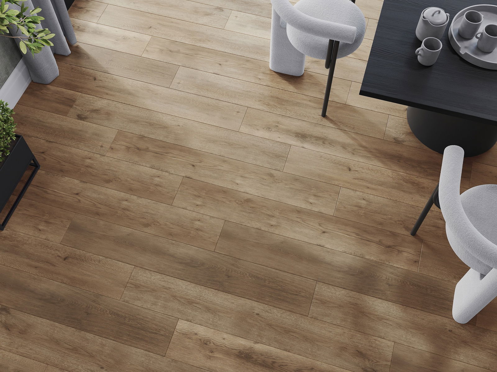 The panels have a 4-sided groove - each edge has been milled in such a way that when laid, a V-shaped connection is formed. This design makes the floor gain a more pronounced structure, which gives it depth and an aesthetic character. This effect is particularly appreciated in modern arrangements, where details highlight the unique appearance of the interior.