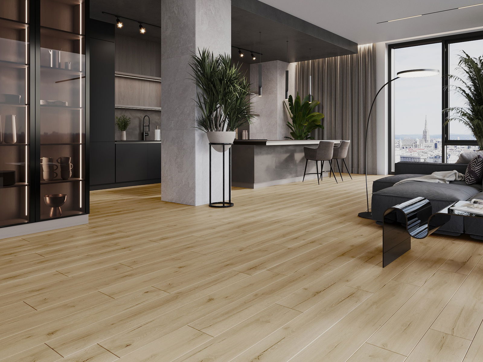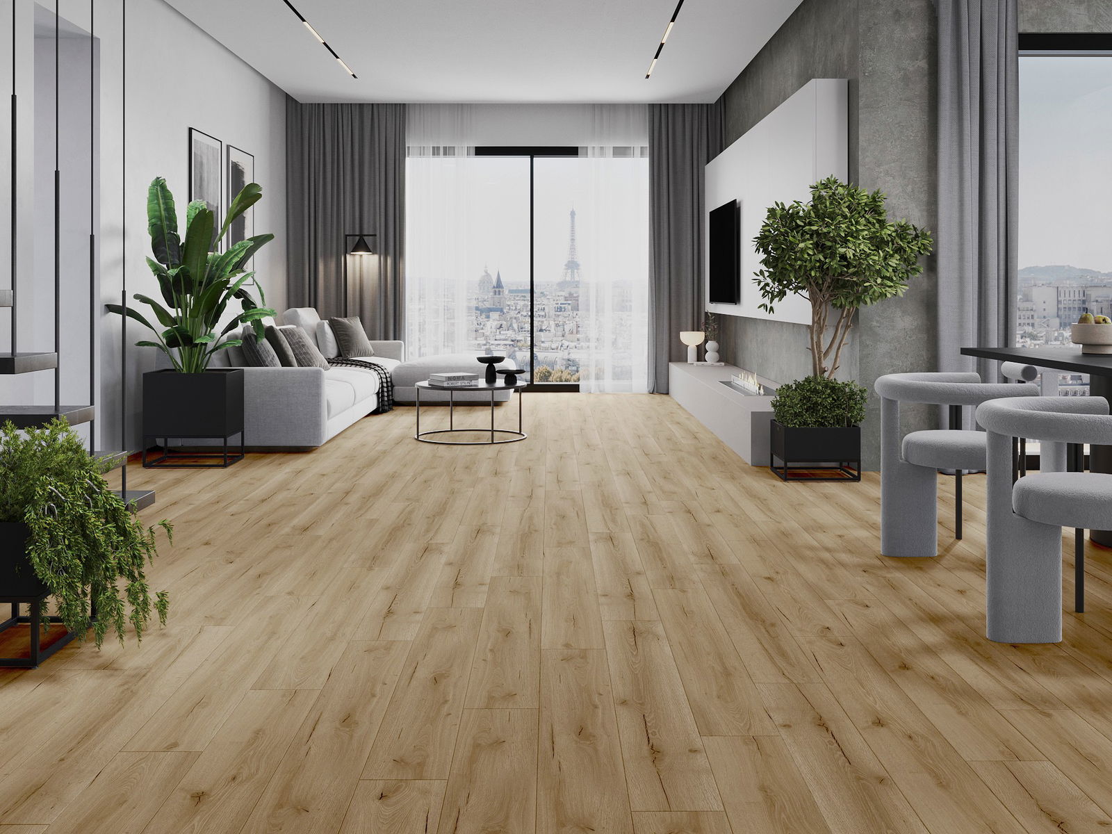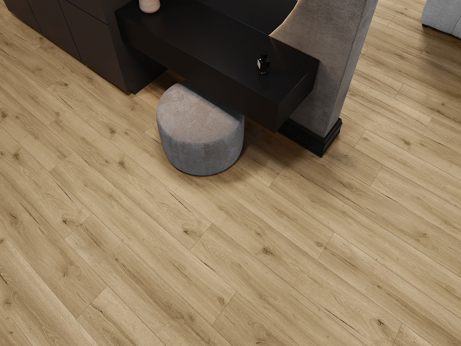 The panels have a 4-sided groove - each edge has been milled in such a way that when laid, a V-shaped connection is formed. This design makes the floor gain a more pronounced structure, which gives it depth and an aesthetic character. This effect is particularly appreciated in modern arrangements, where details highlight the unique appearance of the interior.