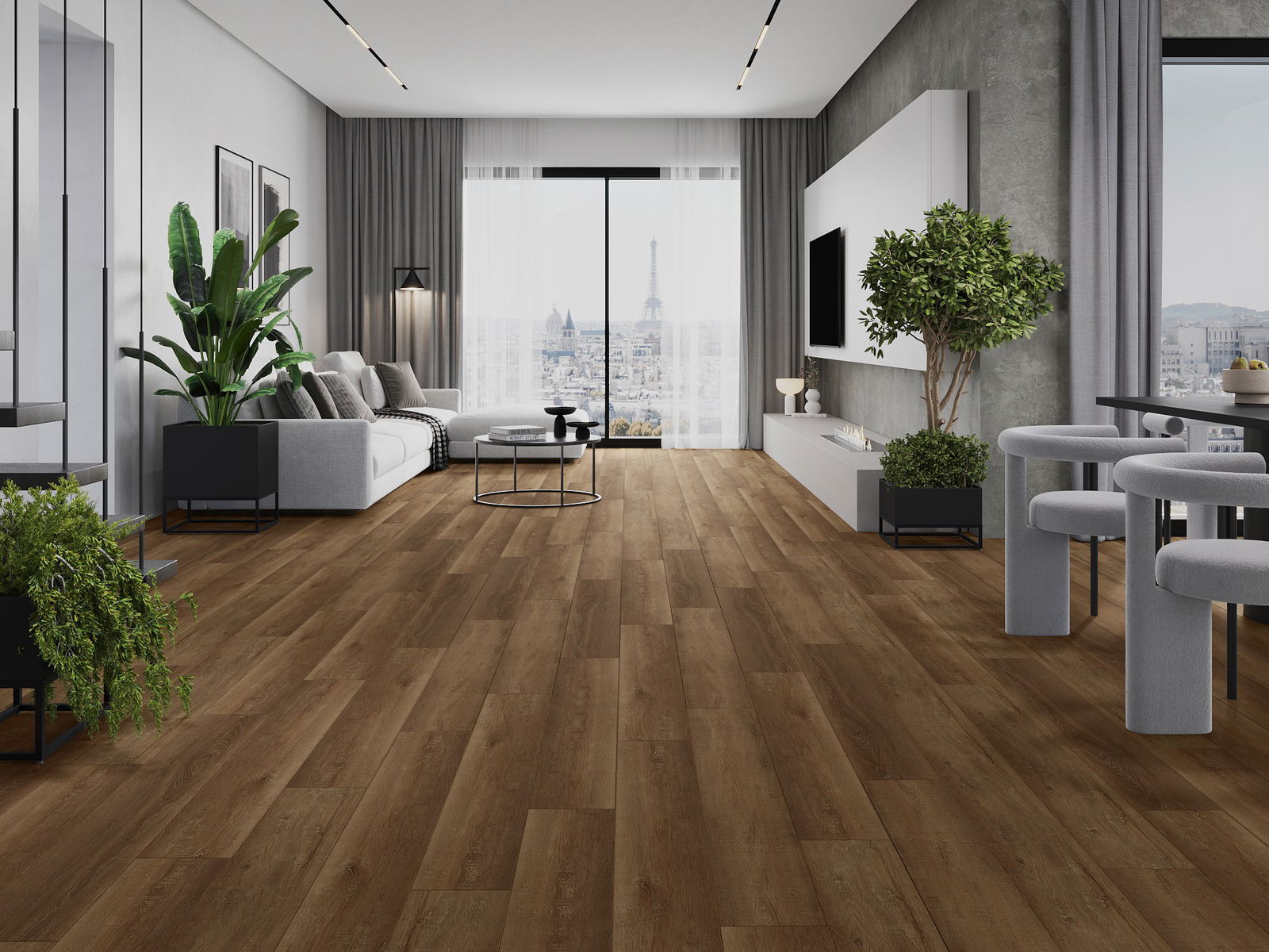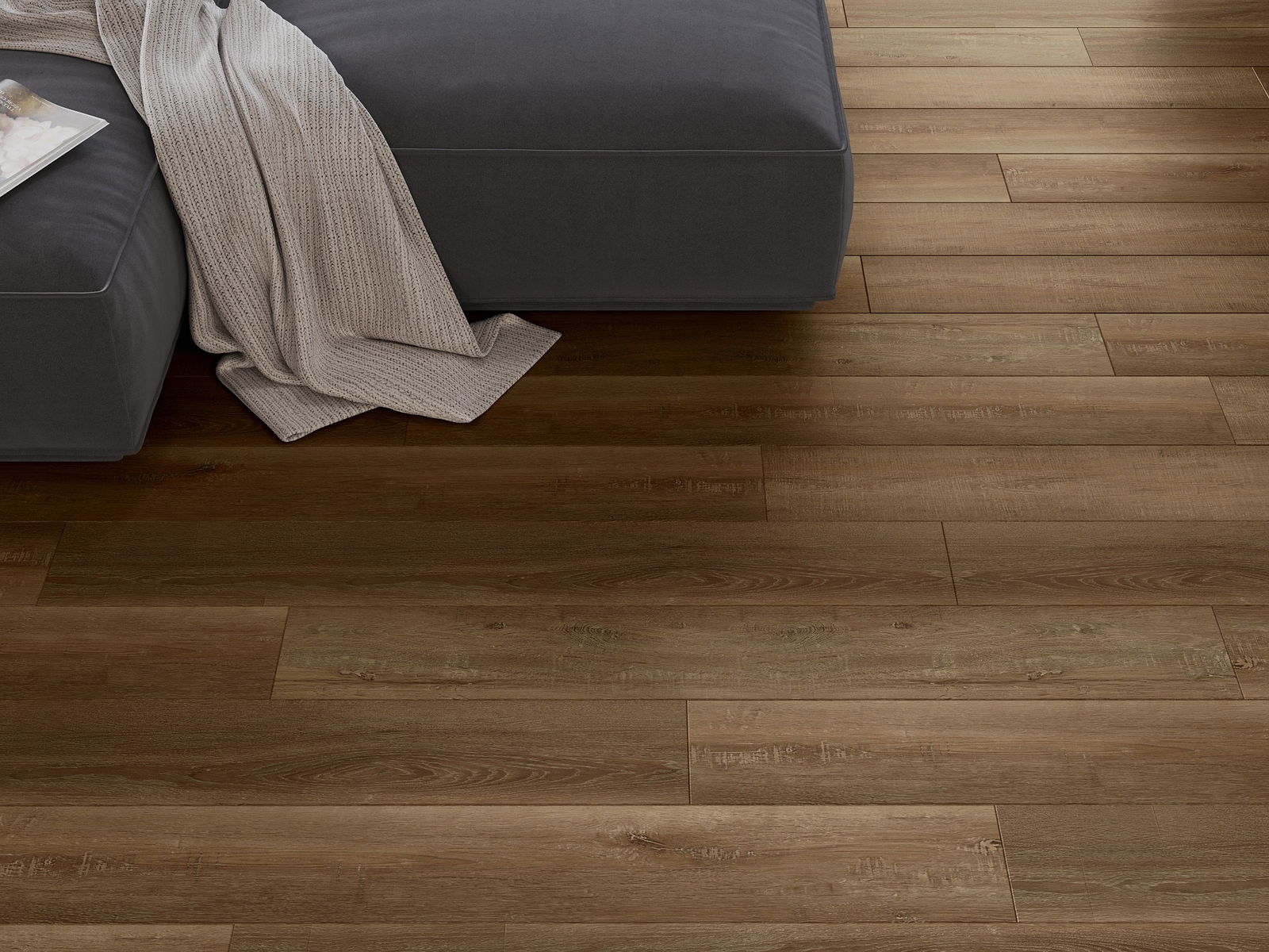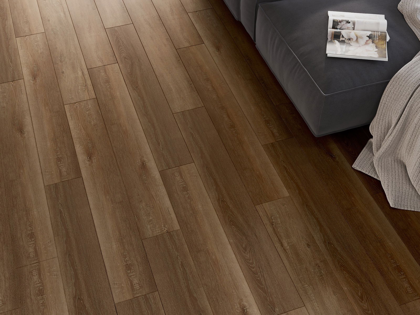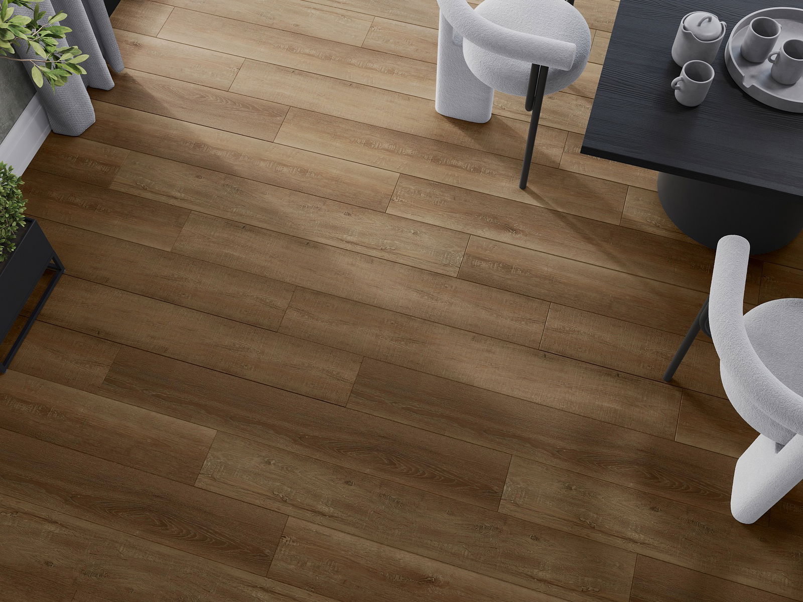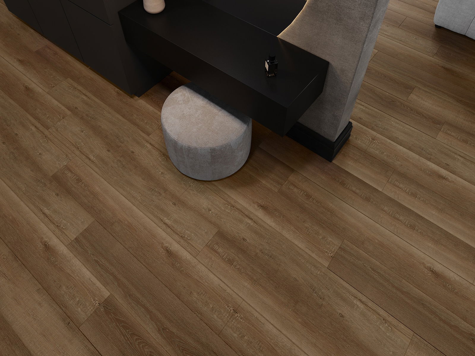 The panels have a 4-sided groove - each edge has been milled in such a way that when laid, a V-shaped connection is formed. This design makes the floor gain a more pronounced structure, which gives it depth and an aesthetic character. This effect is particularly appreciated in modern arrangements, where details highlight the unique appearance of the interior.