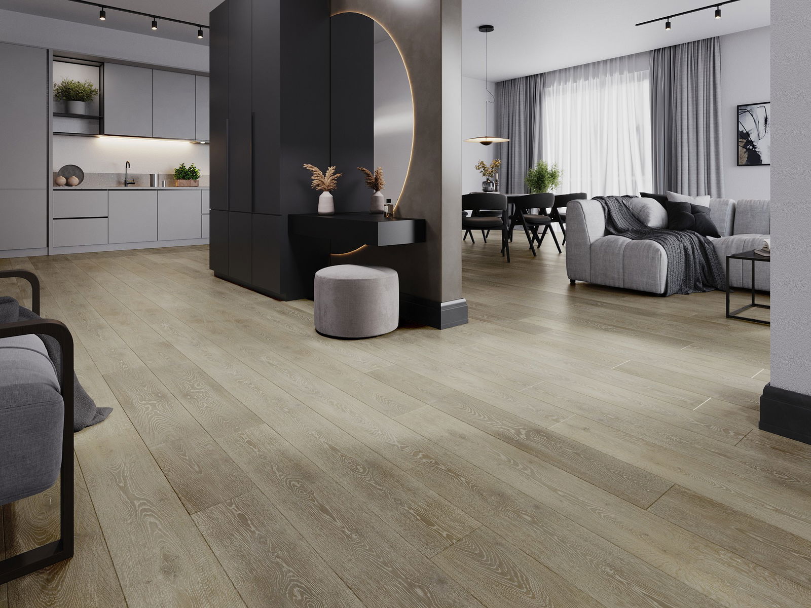 The panels have a 4-sided groove - each edge has been milled in such a way that when laid, a V-shaped connection is formed. This design makes the floor gain a more pronounced structure, which gives it depth and an aesthetic character. This effect is particularly appreciated in modern arrangements, where details highlight the unique appearance of the interior.