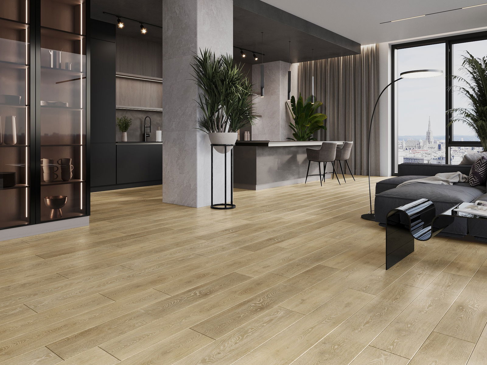 The panels have a 4-sided groove - each edge has been milled in such a way that when laid, a V-shaped connection is formed. This design makes the floor gain a more pronounced structure, which gives it depth and an aesthetic character. This effect is particularly appreciated in modern arrangements, where details highlight the unique appearance of the interior.