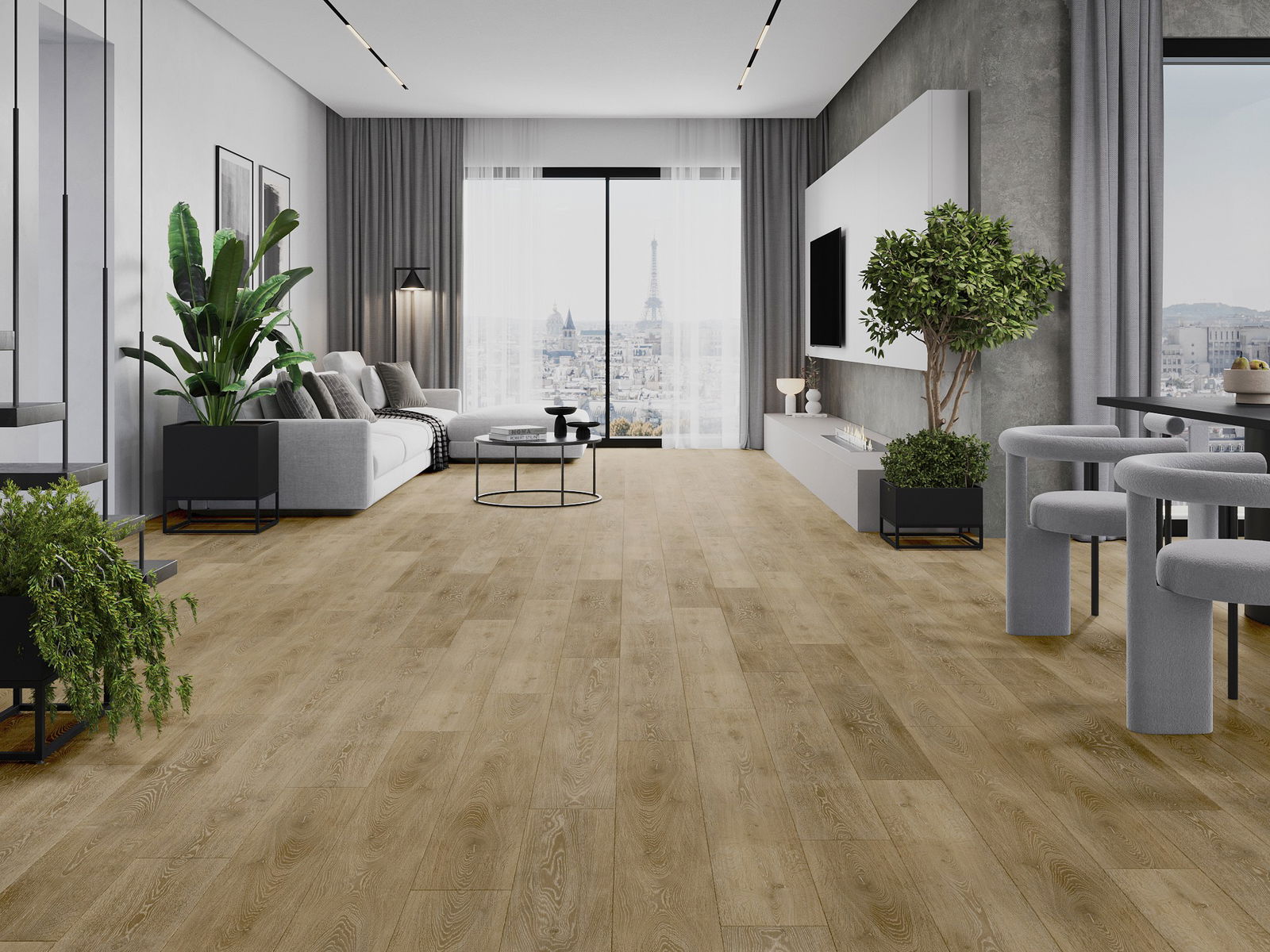 Mexen Alabama is a unique sample of vinyl panels with dimensions of 1240 x 182 mm, thickness of 6.5 mm, providing not only aesthetics but also functionality. Thanks to the integrated IXPE underlay with a thickness of 1.5 mm, installation is quick and simple (Uniclick 2G). The panel is completely waterproof and resistant to mechanical damage and scratches. Utility class 32 and oak structure make it ideal for any interior, and the stylish 4-sided V-Groove adds elegance.