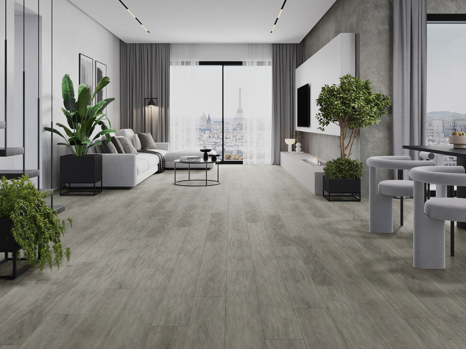 The vinyl panel 1240 x 182 mm stands out for its extraordinary quality and functionality. With a thickness of 6.5 mm and an integrated IXPE underlay of 1.5 mm, it provides optimal acoustic insulation and user comfort. The 100% water resistance and resistance to mechanical damage and scratches make it an ideal choice for heavily used spaces. Additionally, the 4-sided V-Groove and Oak texture offer an elegant look, and the Uniclick 2G installation is quick and easy.