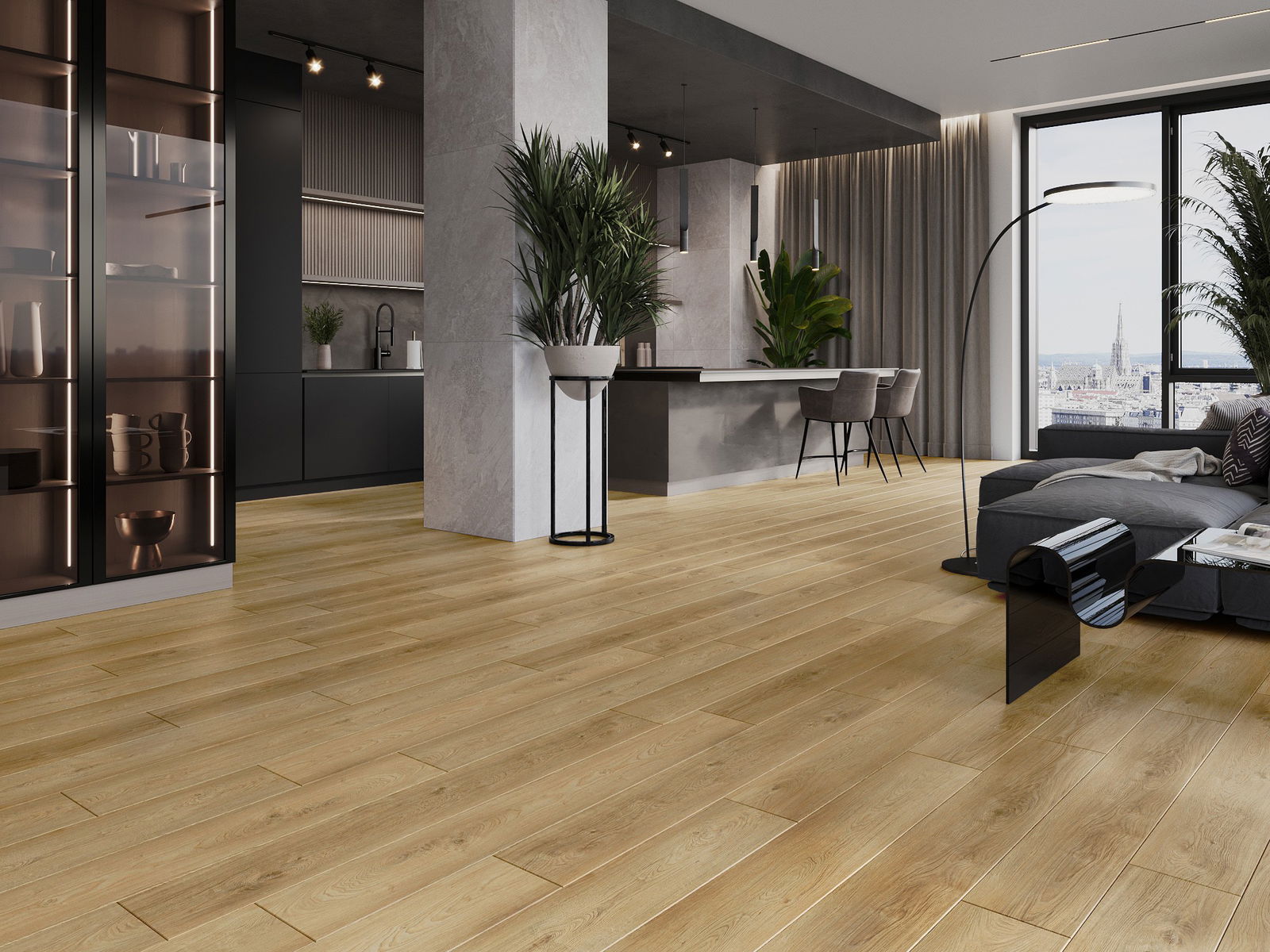 The panels have a 4-sided groove - each edge has been milled in such a way that when laid, a V-shaped connection is formed. This design makes the floor gain a more pronounced structure, which gives it depth and an aesthetic character. This effect is particularly appreciated in modern arrangements, where details highlight the unique appearance of the interior.