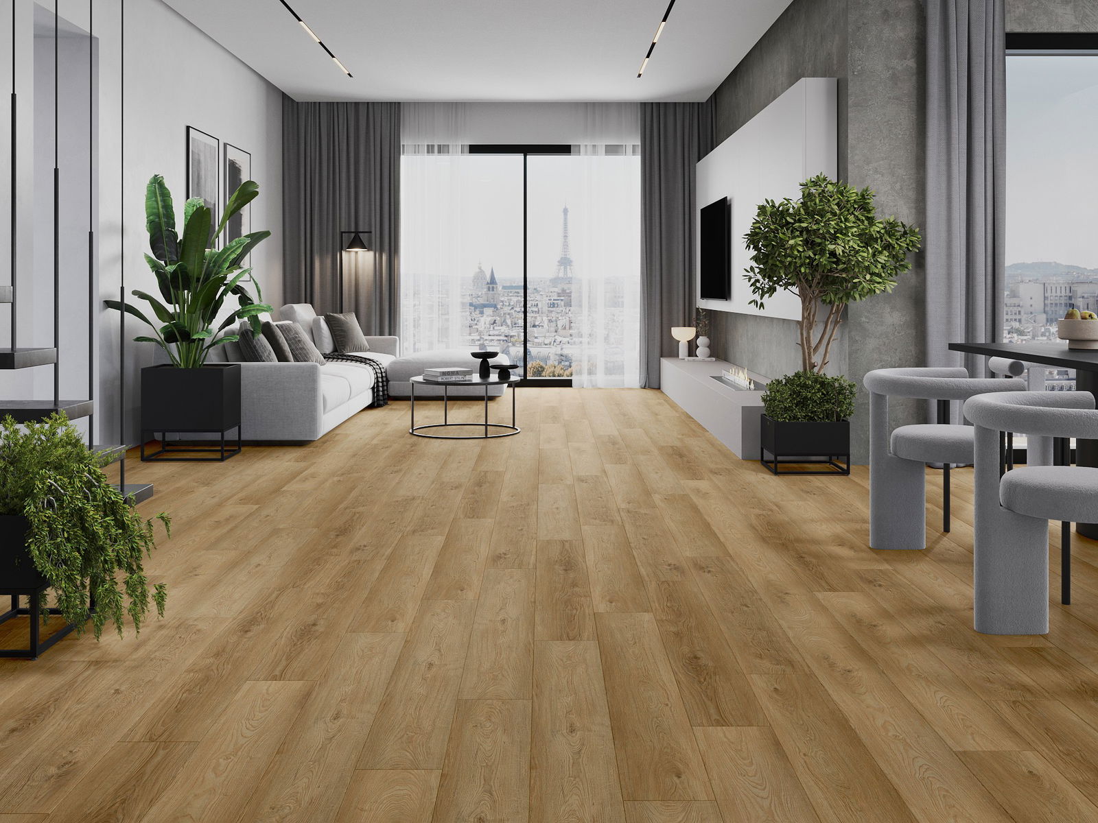 Mexen Sunset Hills is an innovative vinyl panel measuring 1240 x 182 mm and 6.5 mm in thickness, featuring an integrated IXPE underlay of 1.5 mm thickness. It is characterized by 100% waterproofness and high resistance to mechanical damage and scratches. Usage class 32 and anti-slip class DS ensure comfort and safety. Thanks to the 4-sided V-Groove and simple Uniclick 2G installation, it is ideal for any interior, also supporting low-temperature underfloor heating.