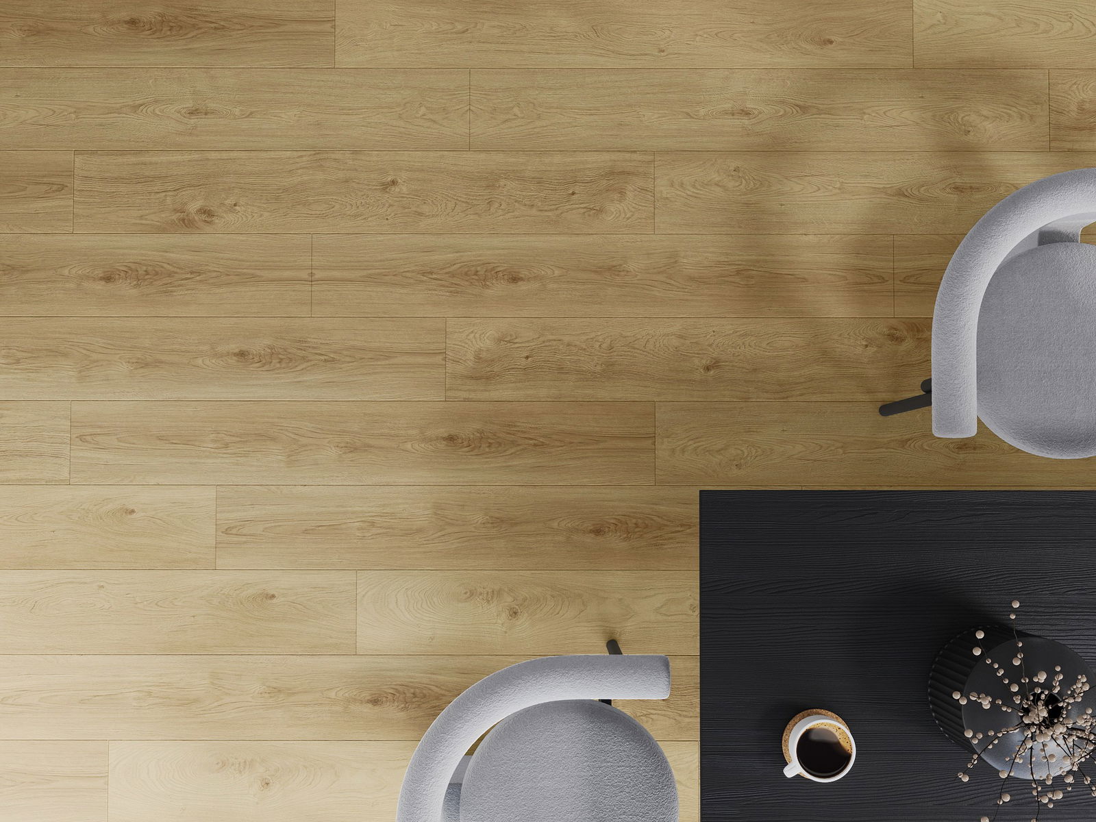 The floor features a high abrasion class - it is intended for public use with medium traffic intensity and can also be used in heavily used household conditions, such as in corridors, bathrooms, or kitchens.