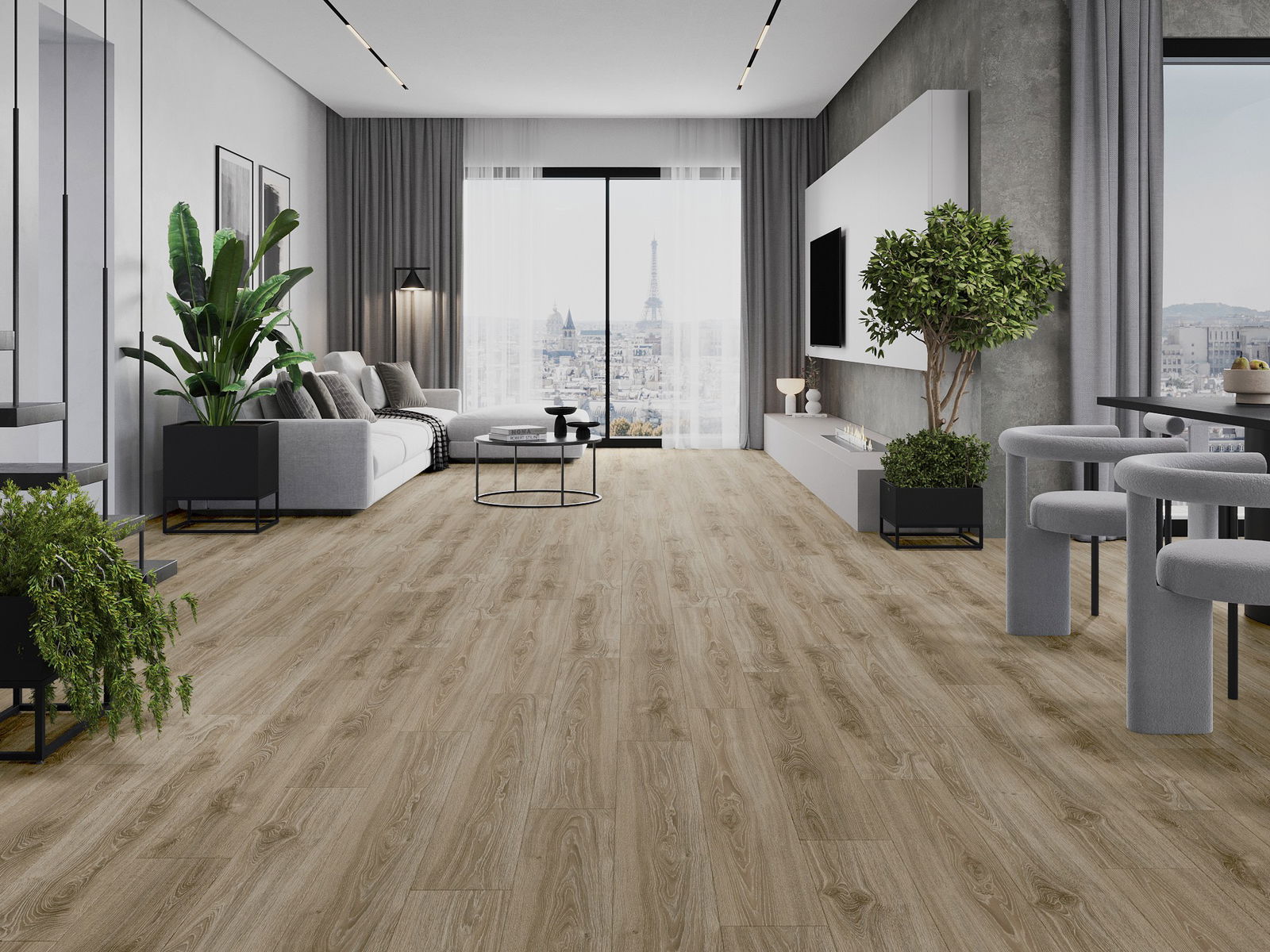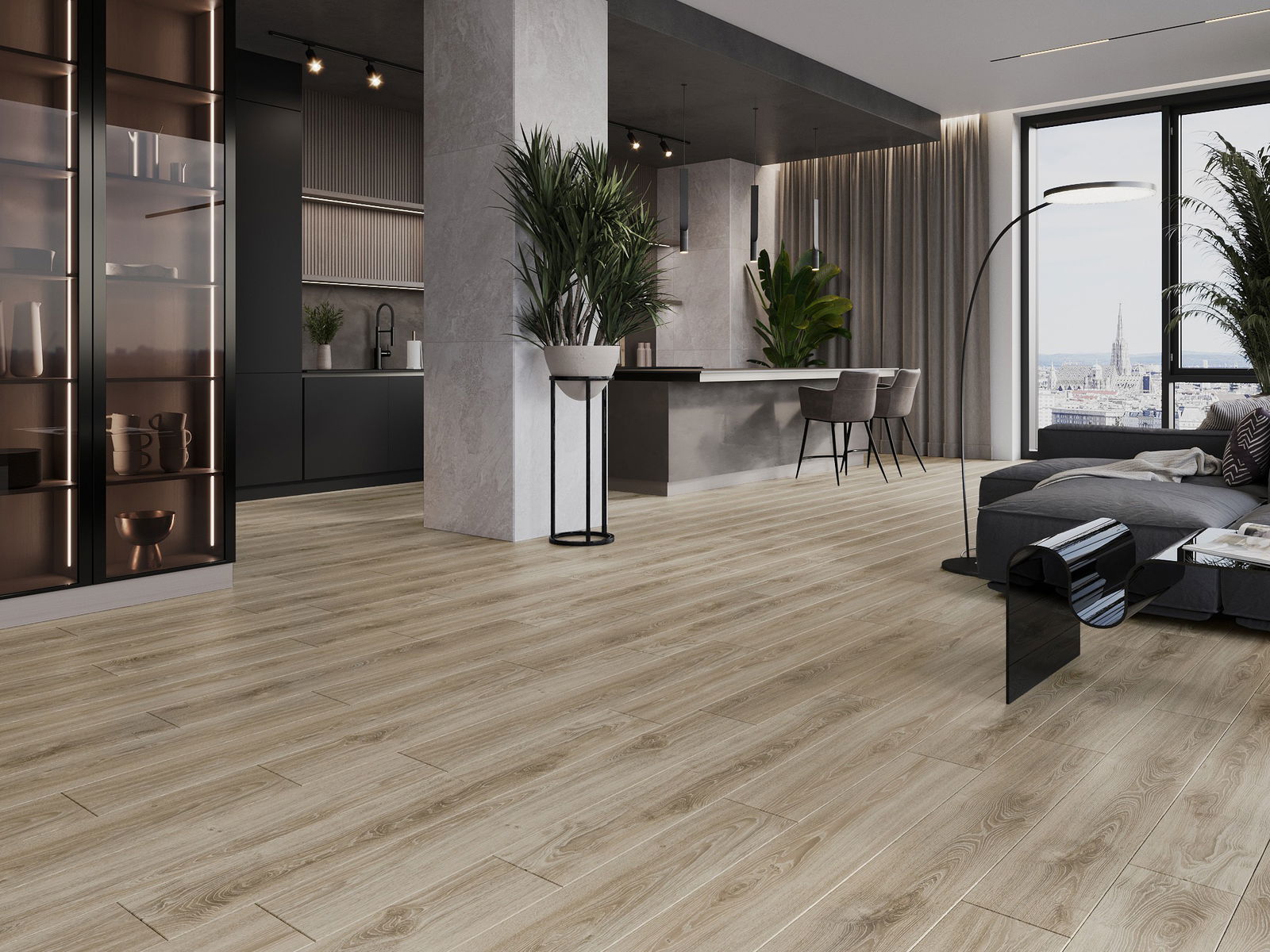 The vinyl panel is characterized by excellent durability and aesthetics thanks to the use of a polymer-stone composite. Its thickness is 6.5 mm, and the surface is scratch-resistant and easy to clean. Additionally, 100% waterproof and the integrated IXPE underlay ensure comfort of use. The Uniclick 2G installation system and slip resistance class DS make the product safe and easy to install. Ideal for any interior, combining elegance with functionality.