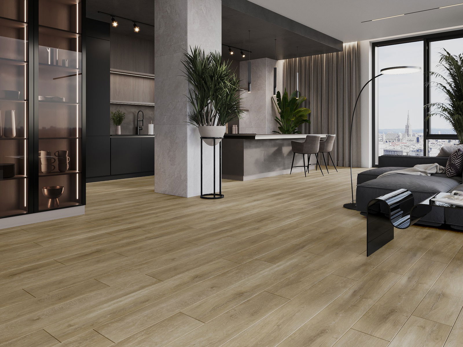 The panels have a 4-sided groove - each edge has been milled in such a way that when laid, a V-shaped connection is formed. This design makes the floor gain a more pronounced structure, which gives it depth and an aesthetic character. This effect is particularly appreciated in modern arrangements, where details highlight the unique appearance of the interior.
