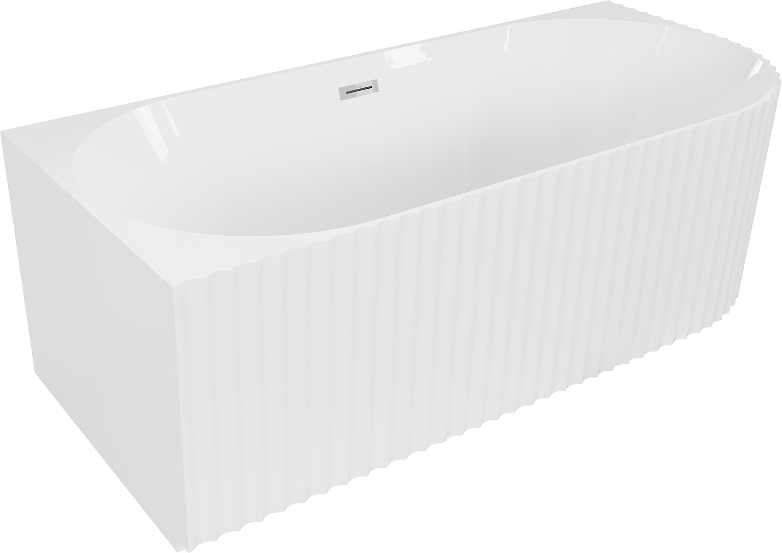 Mexen Gia free-standing corner ribbed left bathtub 150 x 75 cm, white gloss, chrome overflow - 52701507500L-01