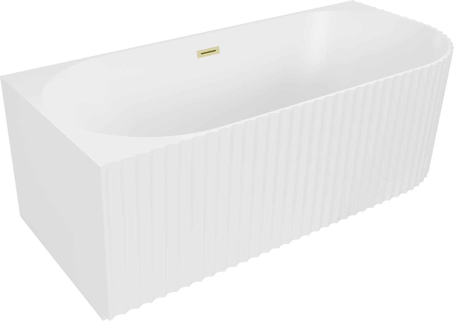 Mexen Gia freestanding corner fluted left bathtub 150 x 75 cm, white matte, brushed gold overflow - 52701507501L-55