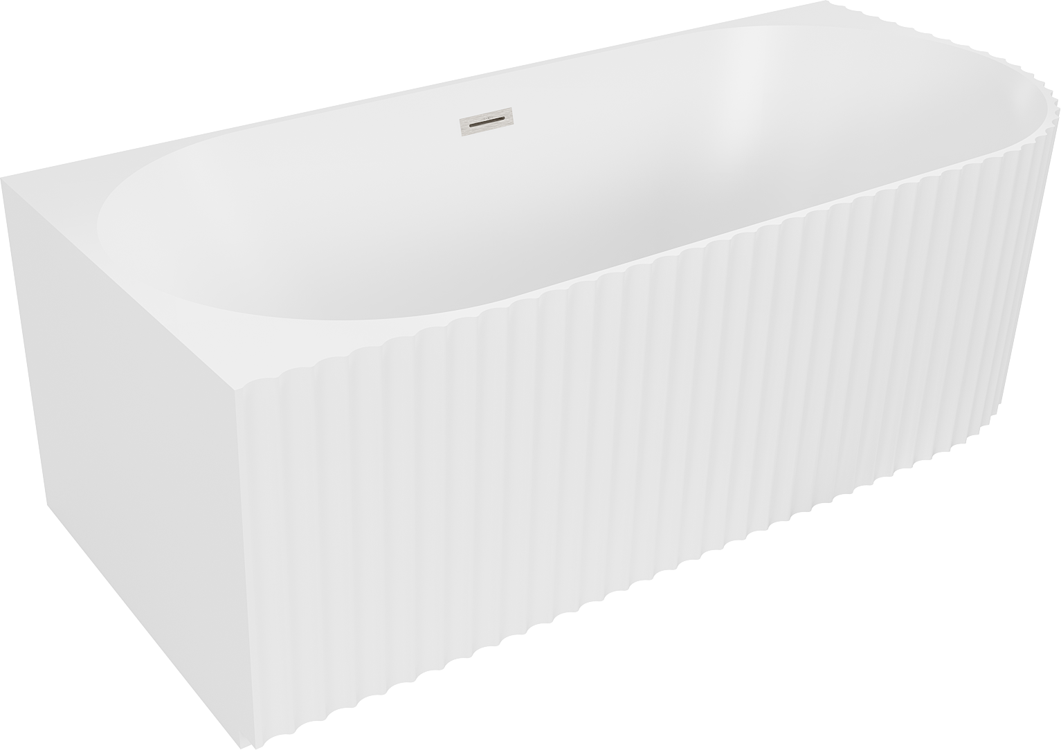 Mexen Gia freestanding corner ribbed left bathtub 150 x 75 cm, white matte, overflow brushed nickel - 52701507501L-97