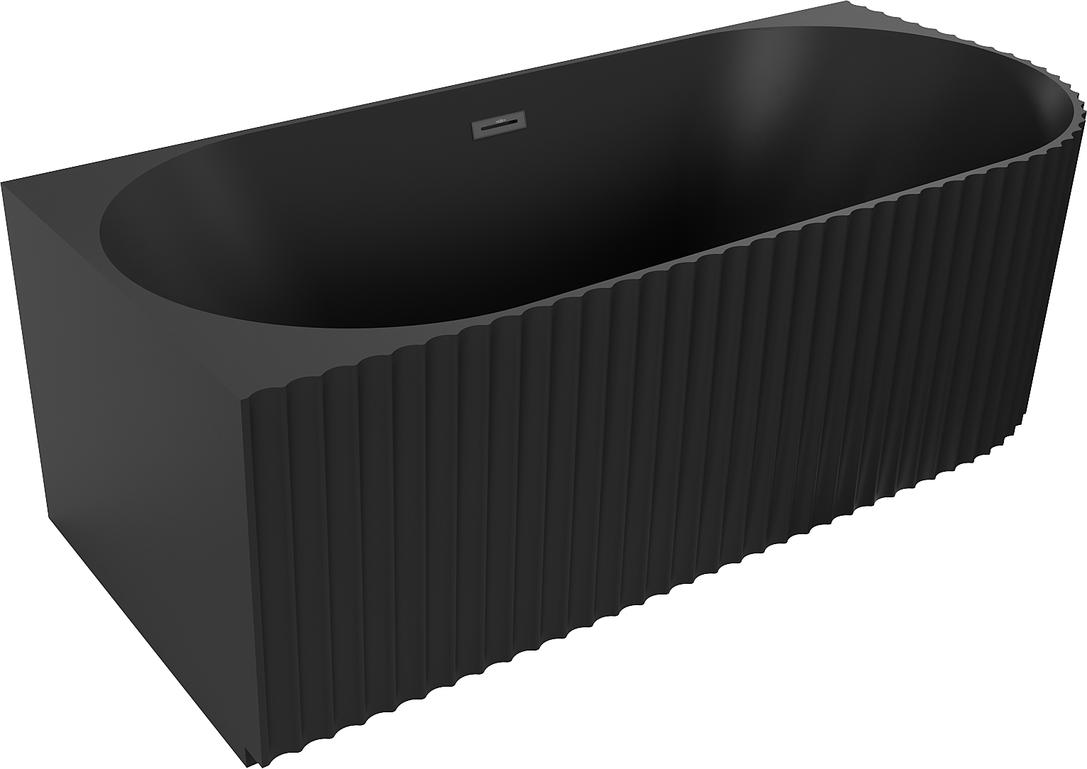 Mexen Gia freestanding corner fluted left bath 150 x 75 cm, black matte, black overflow - 52701507571L-70
