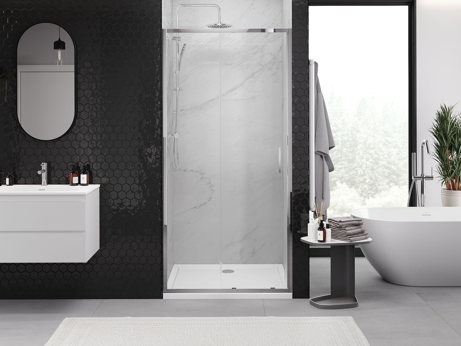 Thanks to the use of a universal mounting system, shower doors can be installed on the right or left side, depending on your needs. This allows you to easily design a shower tailored to the bathroom space.