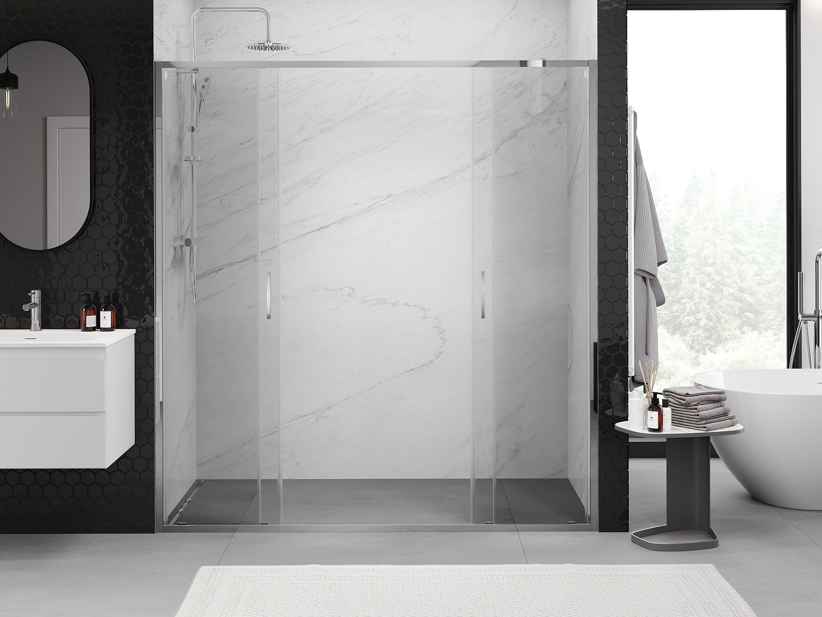 Sliding doors move along special guides and do not require additional space to open them, making them ideal for smaller bathrooms. Thanks to the double rollers with a metal body, their movement is smooth.