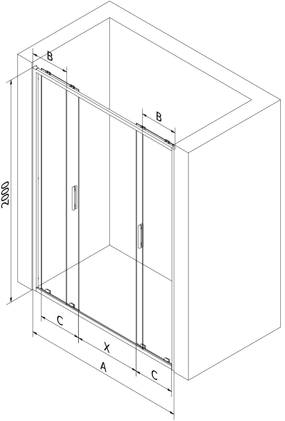 Mexen Exo Double Sliding Shower Doors 200 cm, Transparent, Chrome - 8152-200-000-01-00