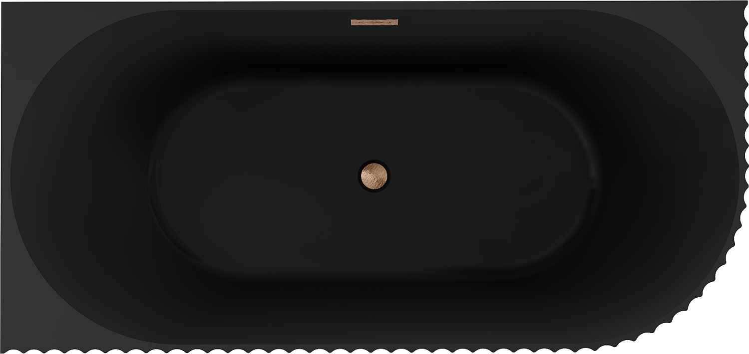 Mexen Gia freestanding corner fluted bathtub left 170 x 80 cm, black matte, brushed copper overflow - 52701708071L-65