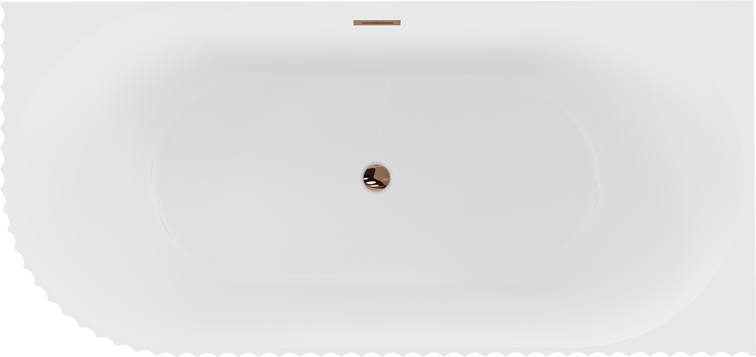 Mexen Gia freestanding corner fluted right bathtub 150 x 75 cm, white matte, overflow rose gold - 52701507501P-60