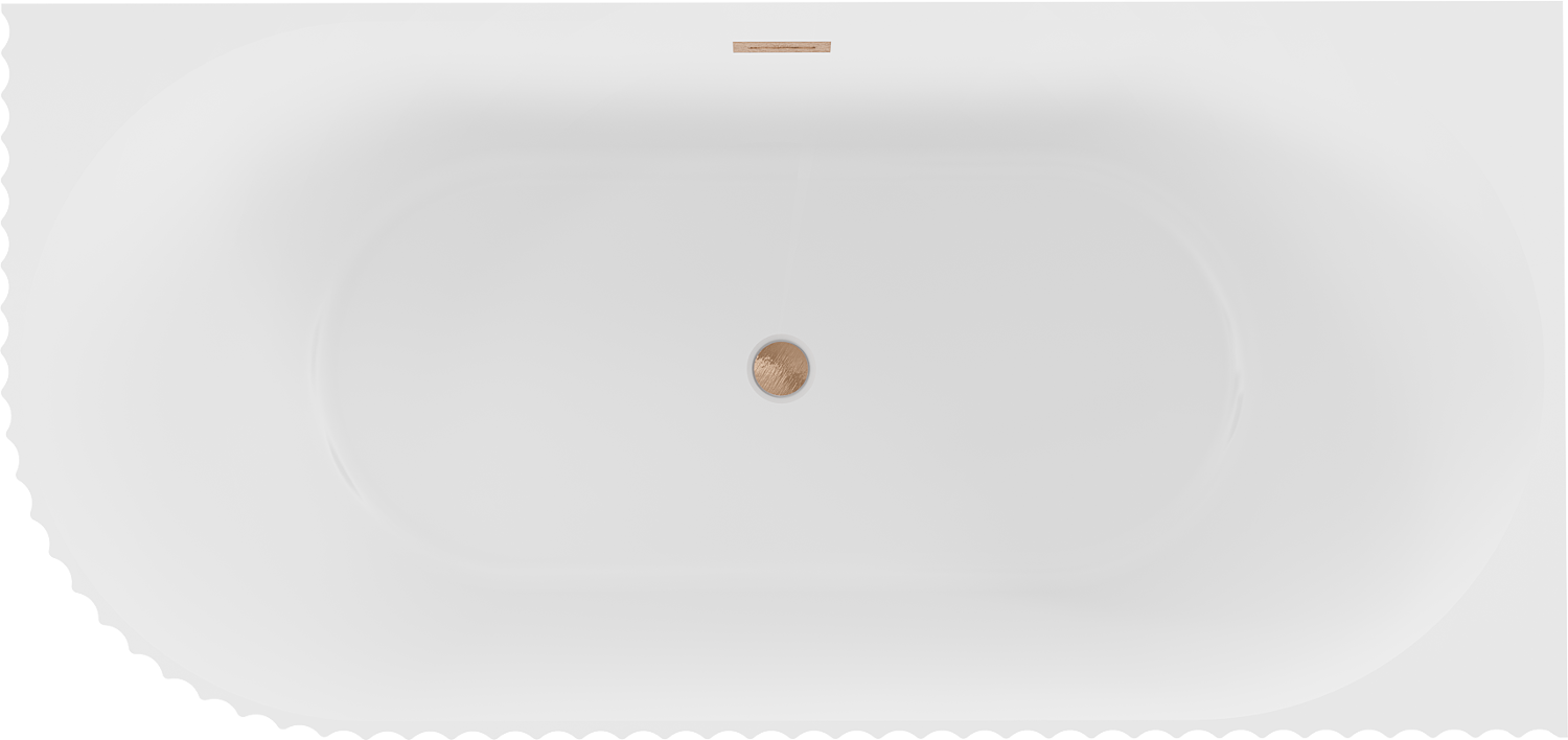Mexen Gia freestanding corner grooved right bathtub 150 x 75 cm, white matte, brushed copper overflow - 52701507501P-65