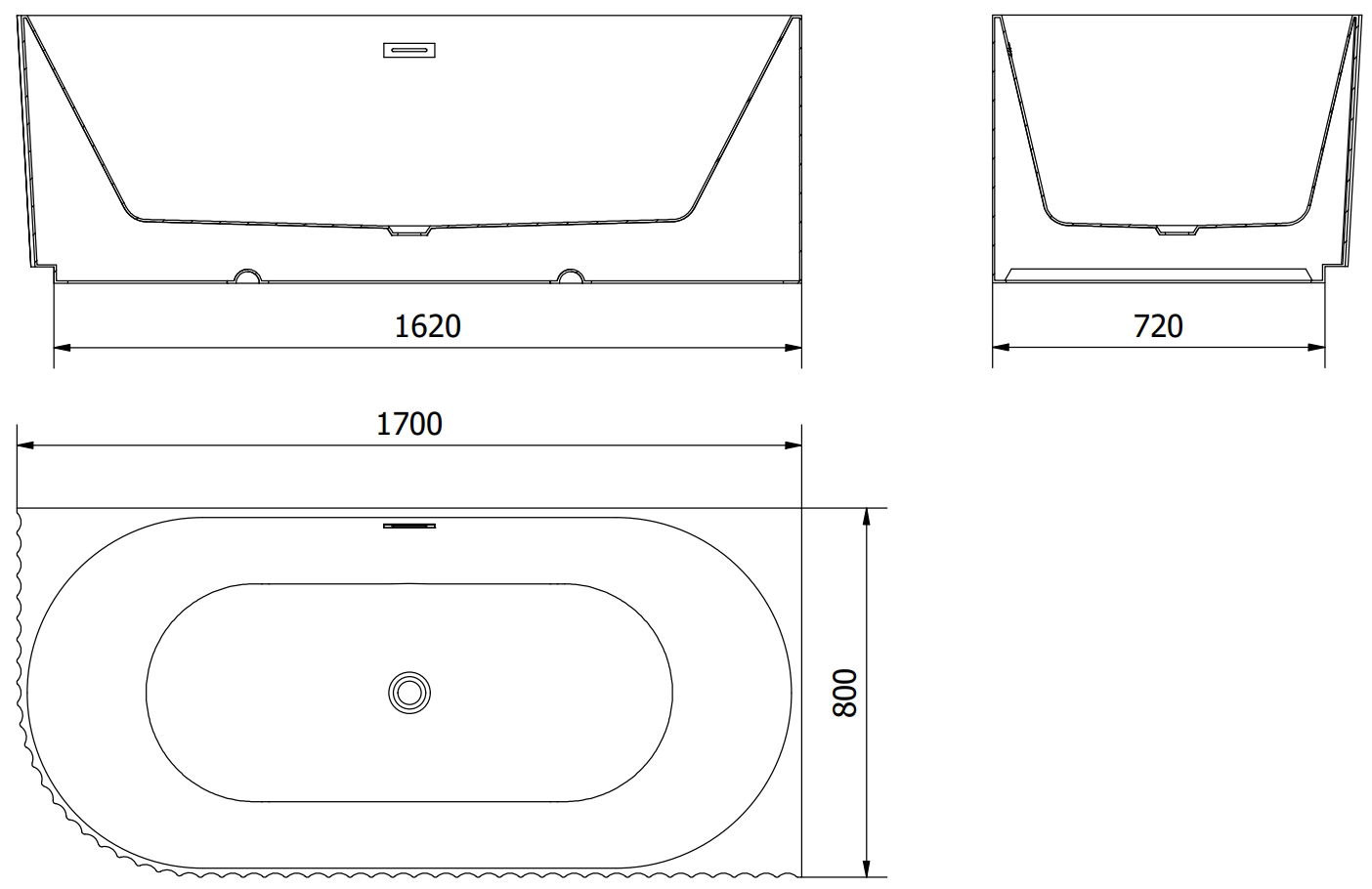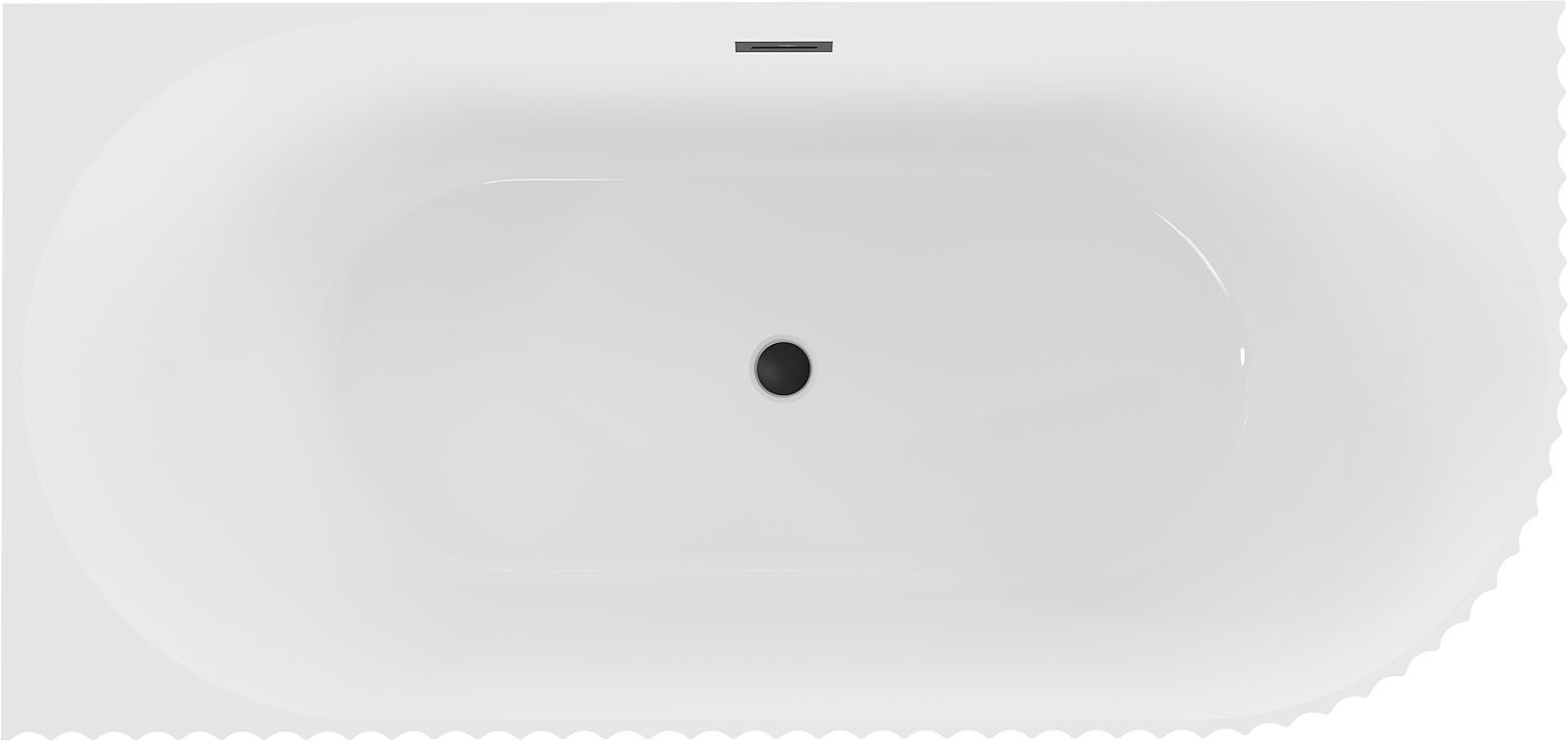 Mexen Gia freestanding corner ribbed bath right 170 x 80 cm, white gloss, black overflow - 52701708000P-70