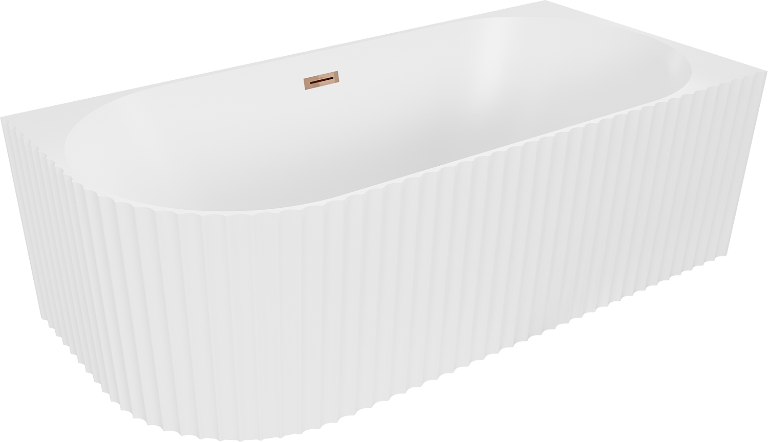 Mexen Gia free-standing corner ribbed right bathtub 170 x 80 cm, white matte, overflow rose gold - 52701708001P-60